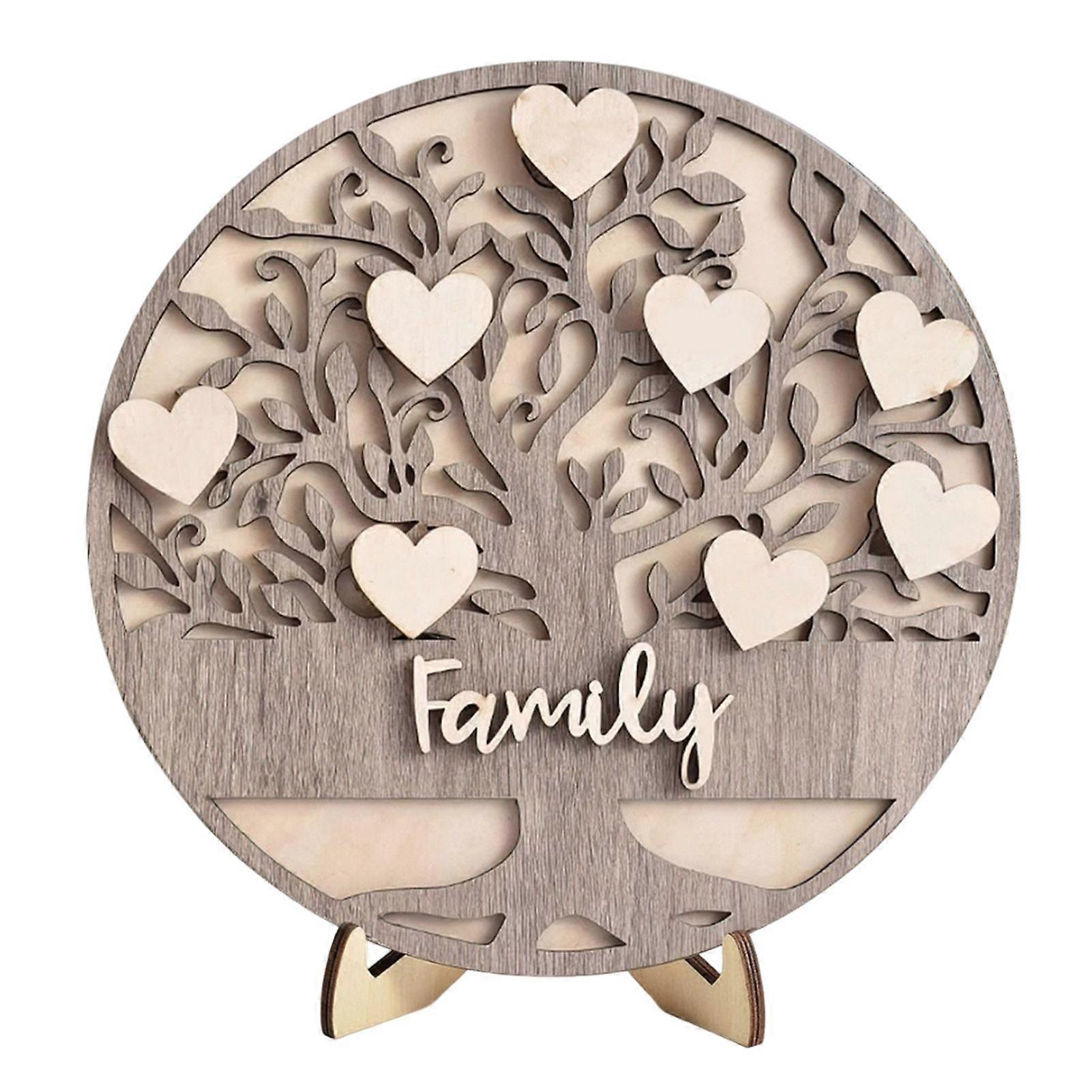 Wooden Family Tree Rustic Family Love Tabletop Sign Layered Heart Tree Ornament with Stand for Mother's Day Gift Mantel Shelf Decoration