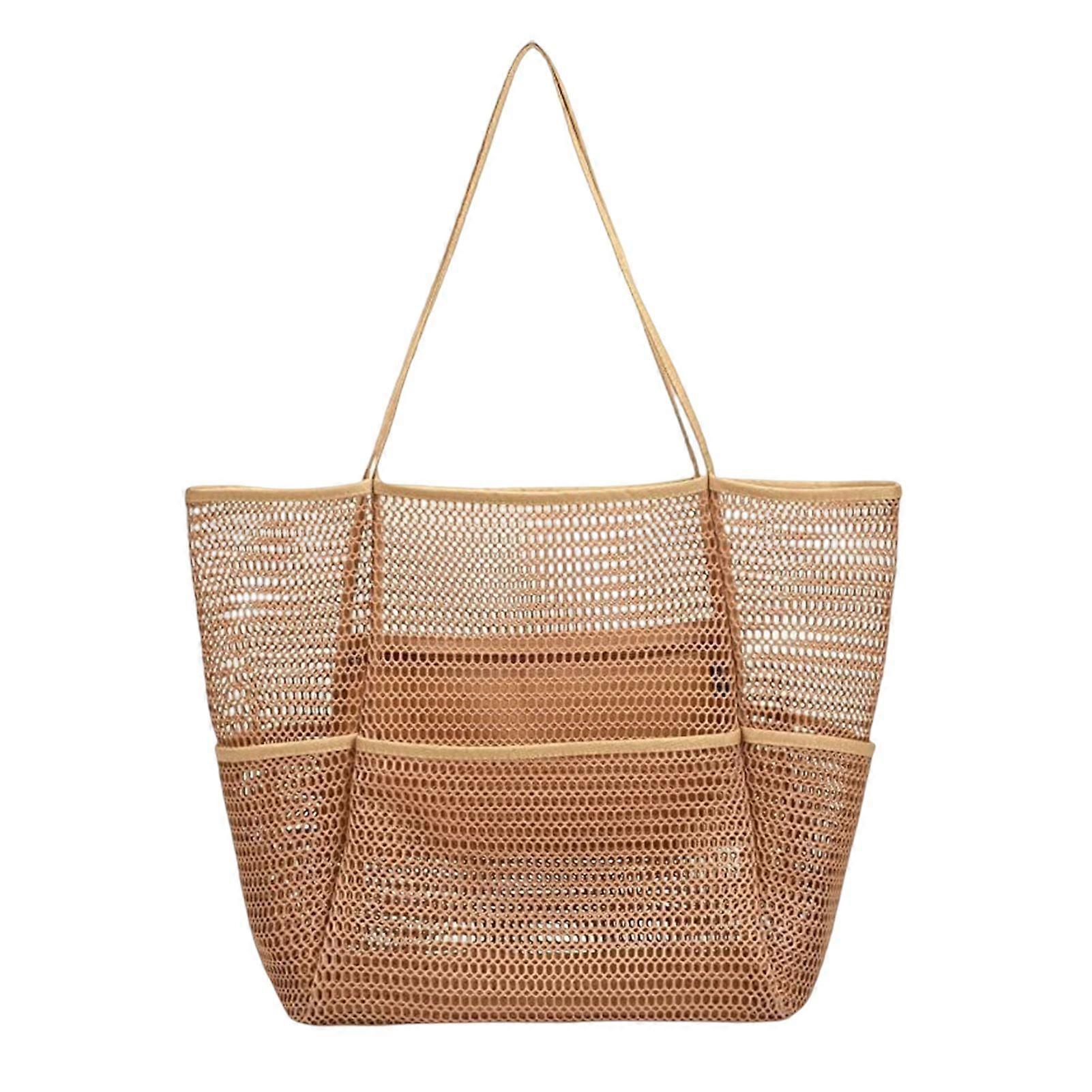 Travel Mesh Tote Bag with Large Pocket Large Capacity Water Resistant Sand-proof Woven Shoulder Handbag Beach Bag
