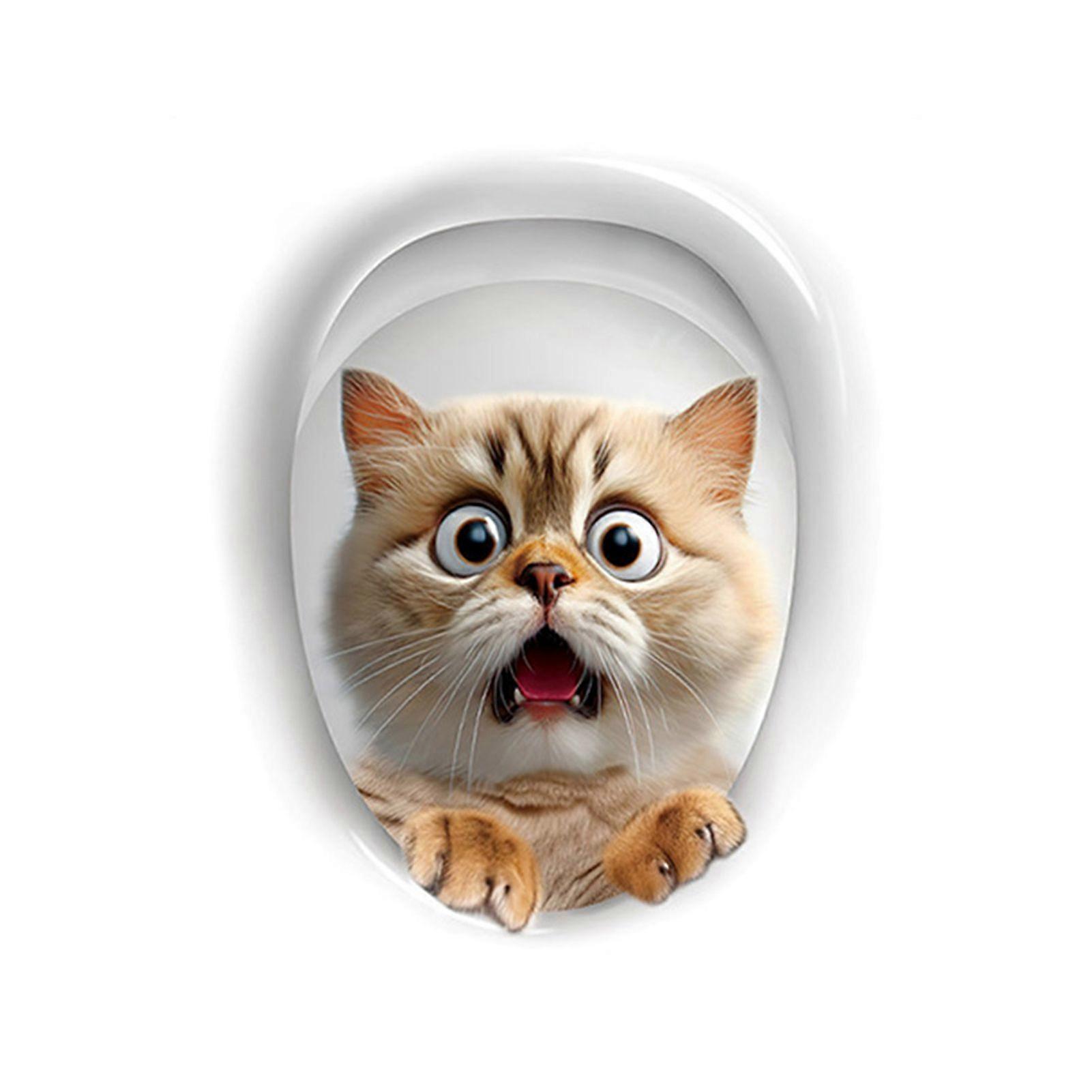 Simulated Cat Toilet Sticker Waterproof Removable Self-adhesive PVC Living Room Bathroom Wall Art 3D Effect Kitten Toilet Seat Lid Decoration Decal