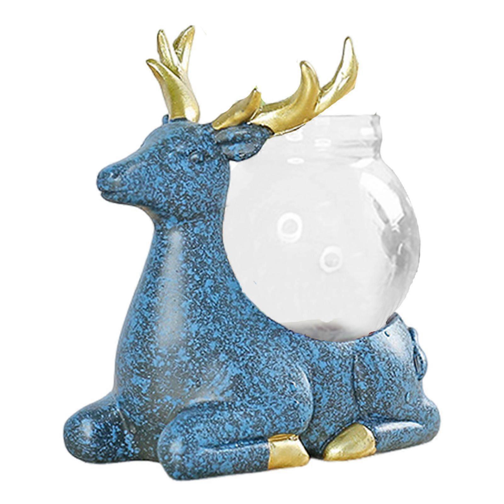 Animal Figurine with Vase Tea Table Mini Flower Vase Ceramic Deer Cat with Glass Hydroponic Planter for Home Bedroom Living Room Decor