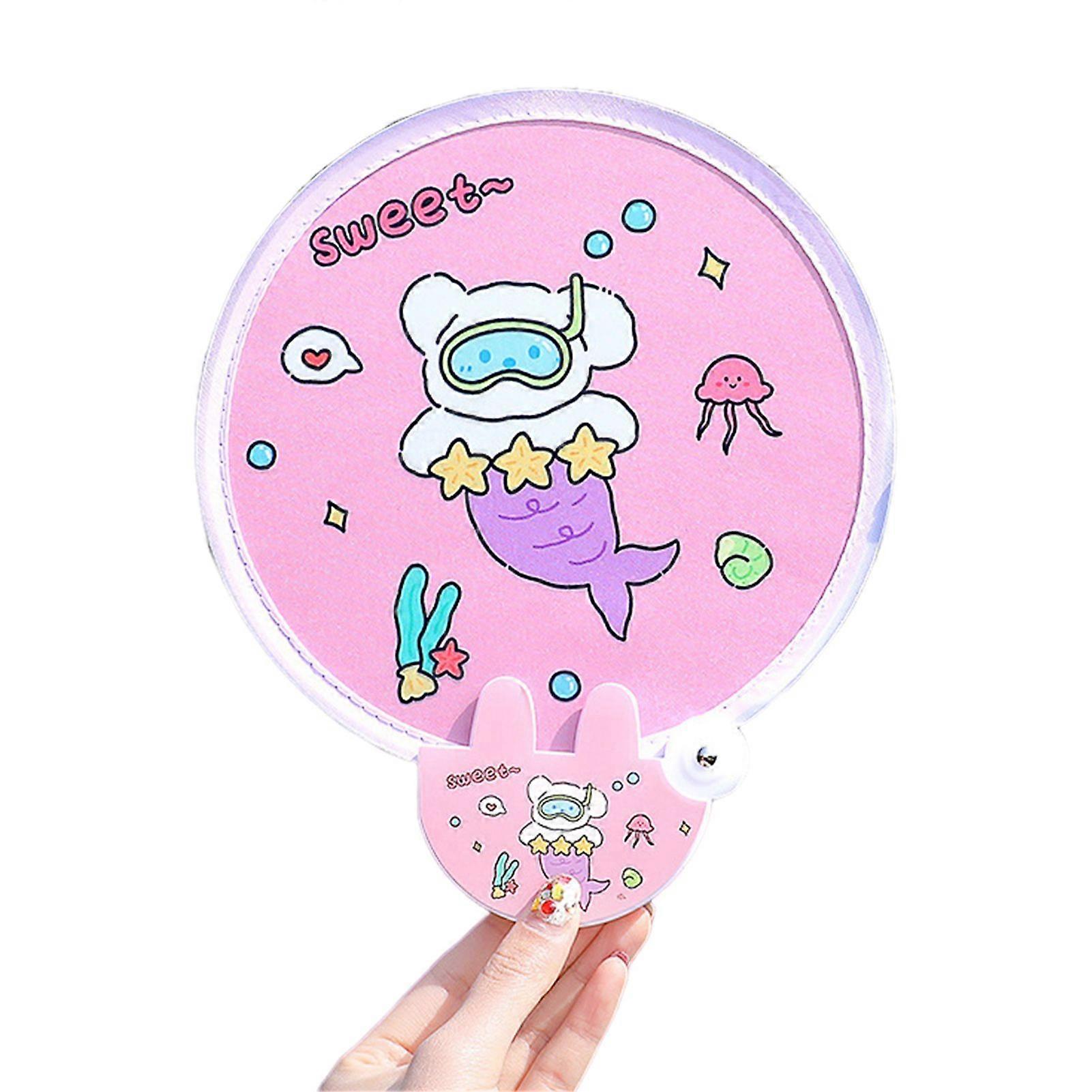 Cartoon Folding Round Fan with Photography Reflector Portable Lightweight Pocket Size Outdoor Travel Camping Picnic Summer Handheld Fan