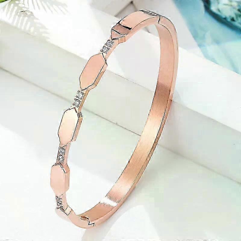 Valentine's Day Gifts New Arrival Connected Rhombus Cubic Zircon Bangle Stainless Steel Gold Color Bracelet Charm Jewelry Women Gift 25-26