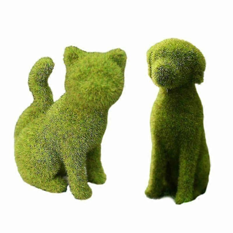 Moss Animal Statue Green Fuzzy Flocked Kitten Puppy Figurines Garden Decoration 25-26