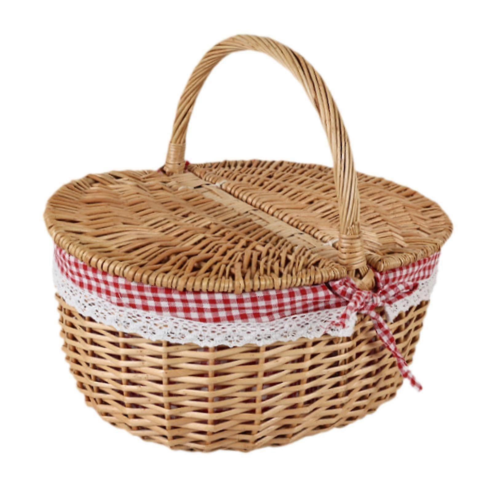 Wicker Picnic Basket With Lid And Handle Woven Storage Hamper For Food Fruits Vegetables Beige Gray Red White Size S 25-26
