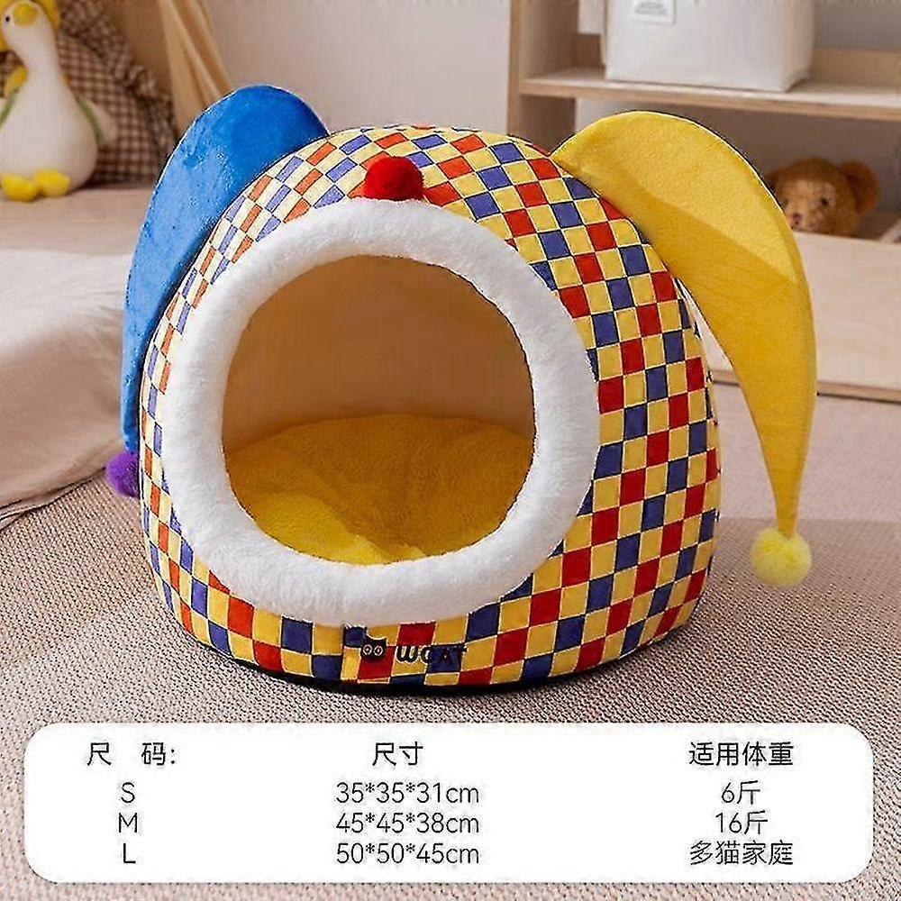 Enclosed Pet Bed for Dogs and Cats with Warm Halloween Clown Design