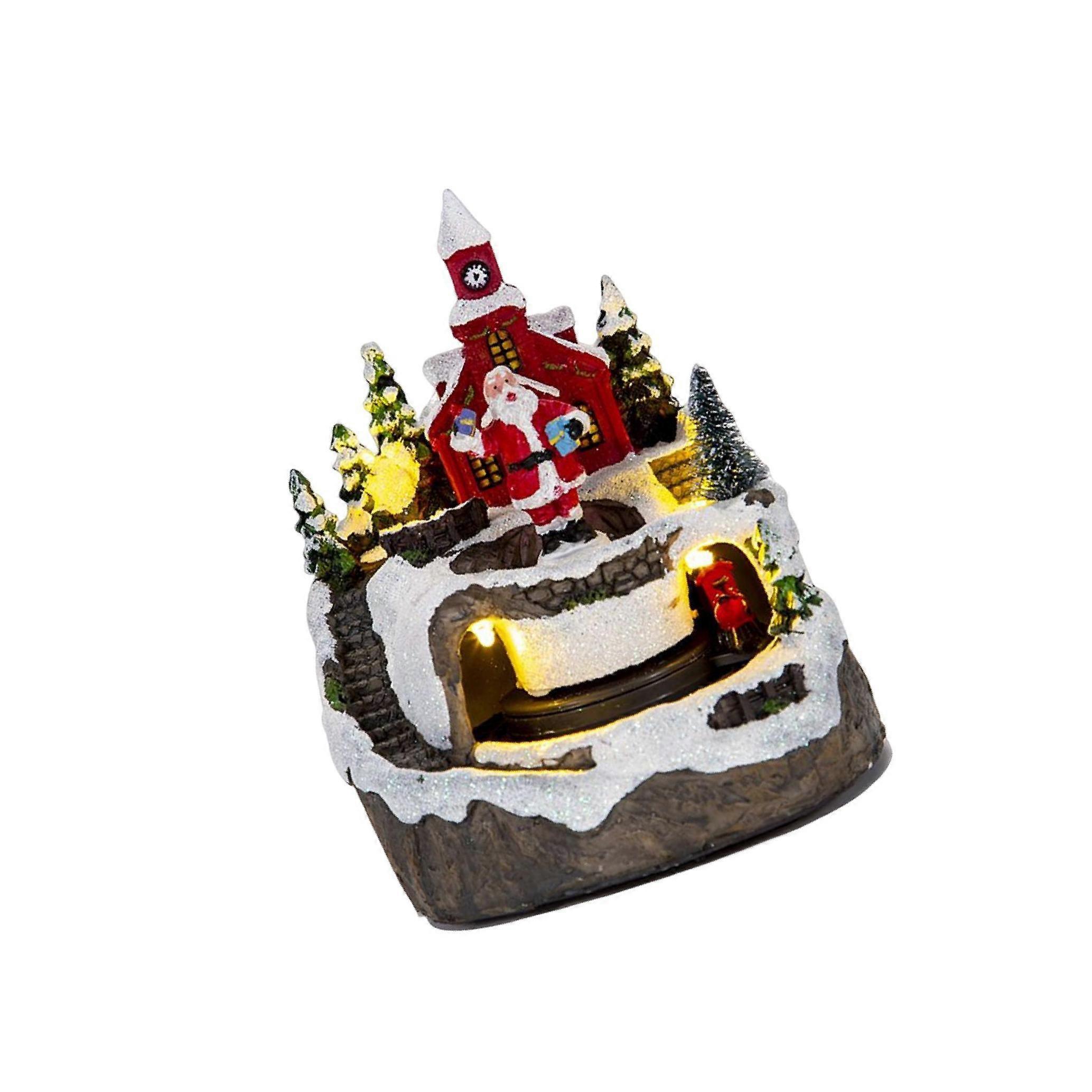 Description: Material: Sculptures made of resin material, durable, and environmentally friendly. Design: Statues feature fine workmanship, exquisite, cute, and beautiful, with lights, sound. Wide Usage: Figurines are excellent scene layout decorations, with lights, create a strong Christmas atmosphere, and let you enjoy the festival, perfect for living rooms, bedrooms, coffee tables, office desks, studies, etc. Fantastic Gift: Sculpture is a delicate collectible, also a nice gift for Christmas, housewarming, festivals, etc. Small Dimension: Compact statues, can place anywhere, toggle the switch to the left, the train rotates without music, toggle the switch to the right, and the train rotates with sound. Specification: Material: Resin Size: 12cmx11cmx15cm/4.72 x4.33 x5.91 inch Package Includes: 1 Sculpture?Ornament Note: Please allow slightly errors due to manual measurement and different monitors.