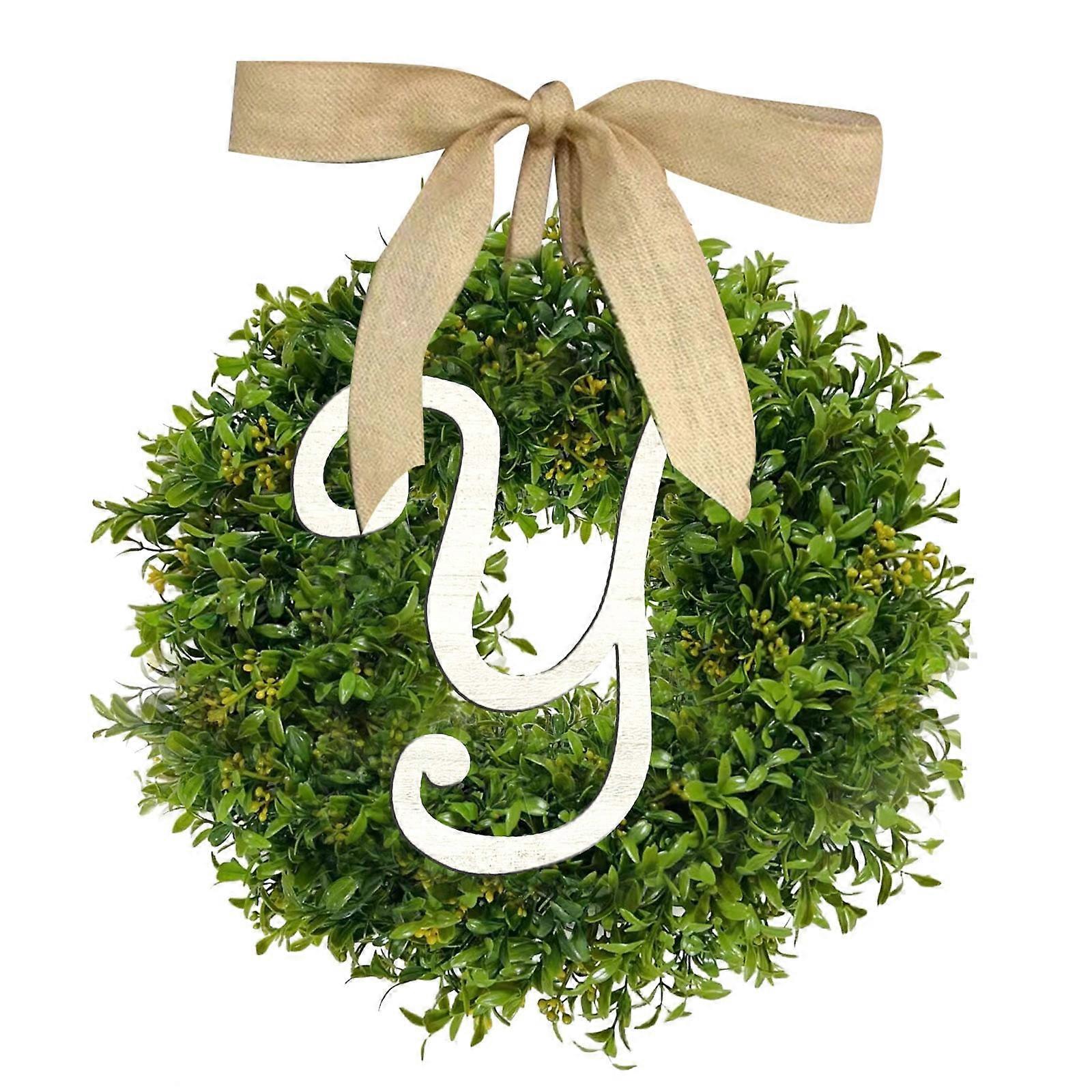 Flower Garland with Last Name, Year-Round Front Door Wreath with Bow, Welcome Sign, 26 Letter Farmhouse Decor, Creative Gift, Outdoor Hanger