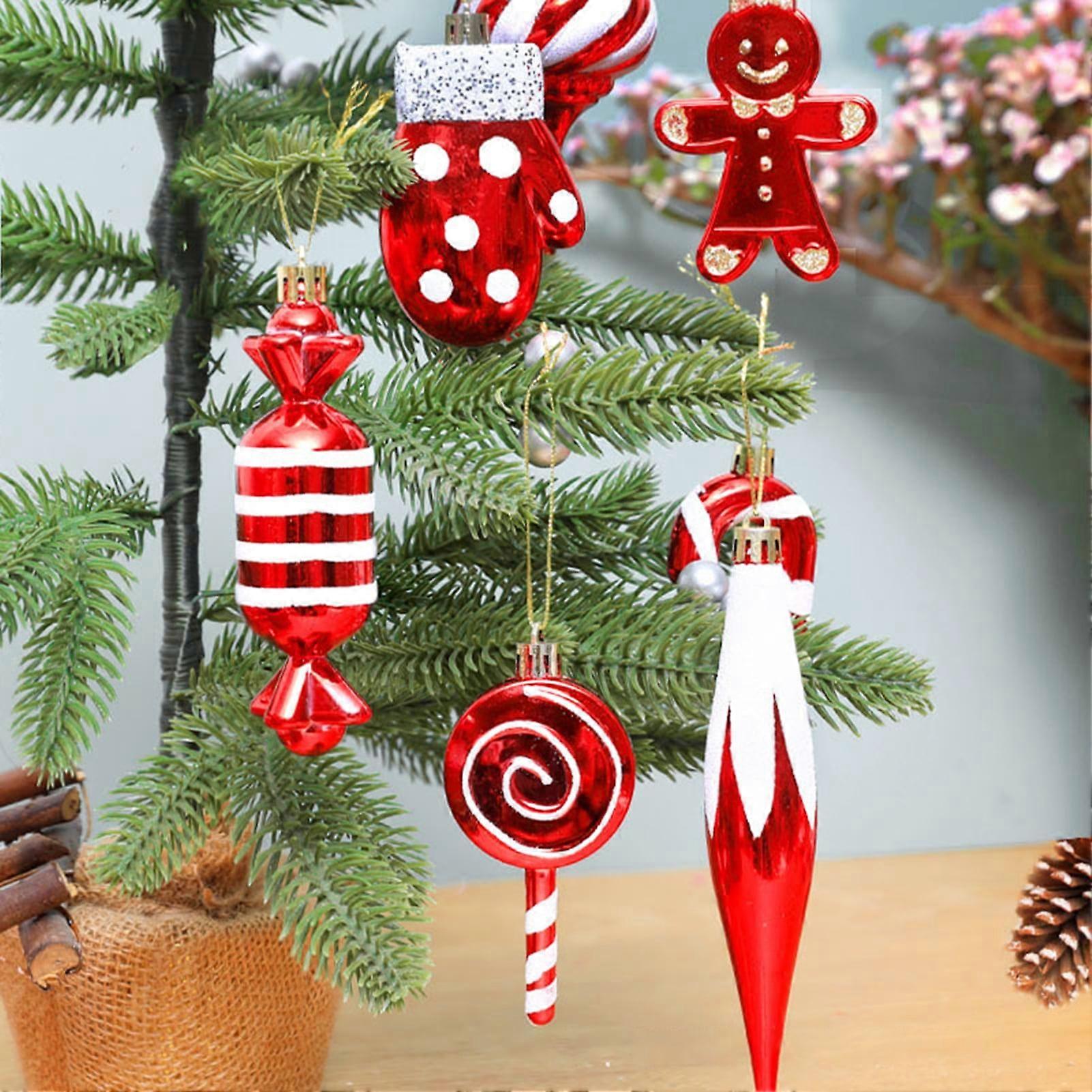 SUSUchens 4/6/8/12 Pcs Christmas Ball Ornaments Star Cane Lollipop Cupcake Hanging Decoration for Xmas Tree Home Indoor Decor Style F