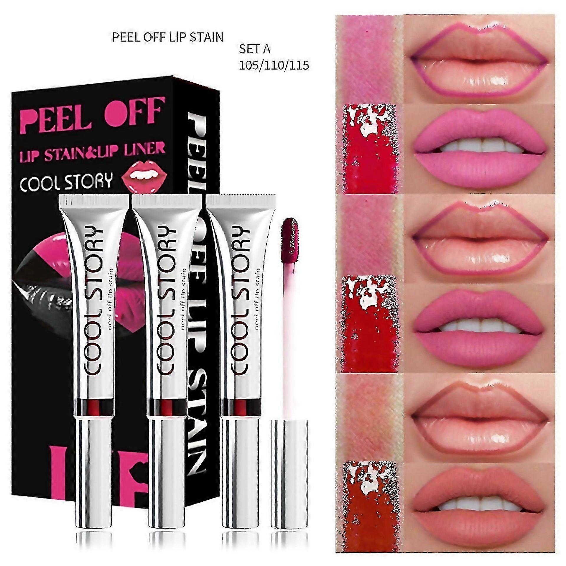 For 3pcs Peel Off Lip Stain Lip Tint Set Matte Lipstick Lip Liner Waterproof Long Lasting Peel Off L