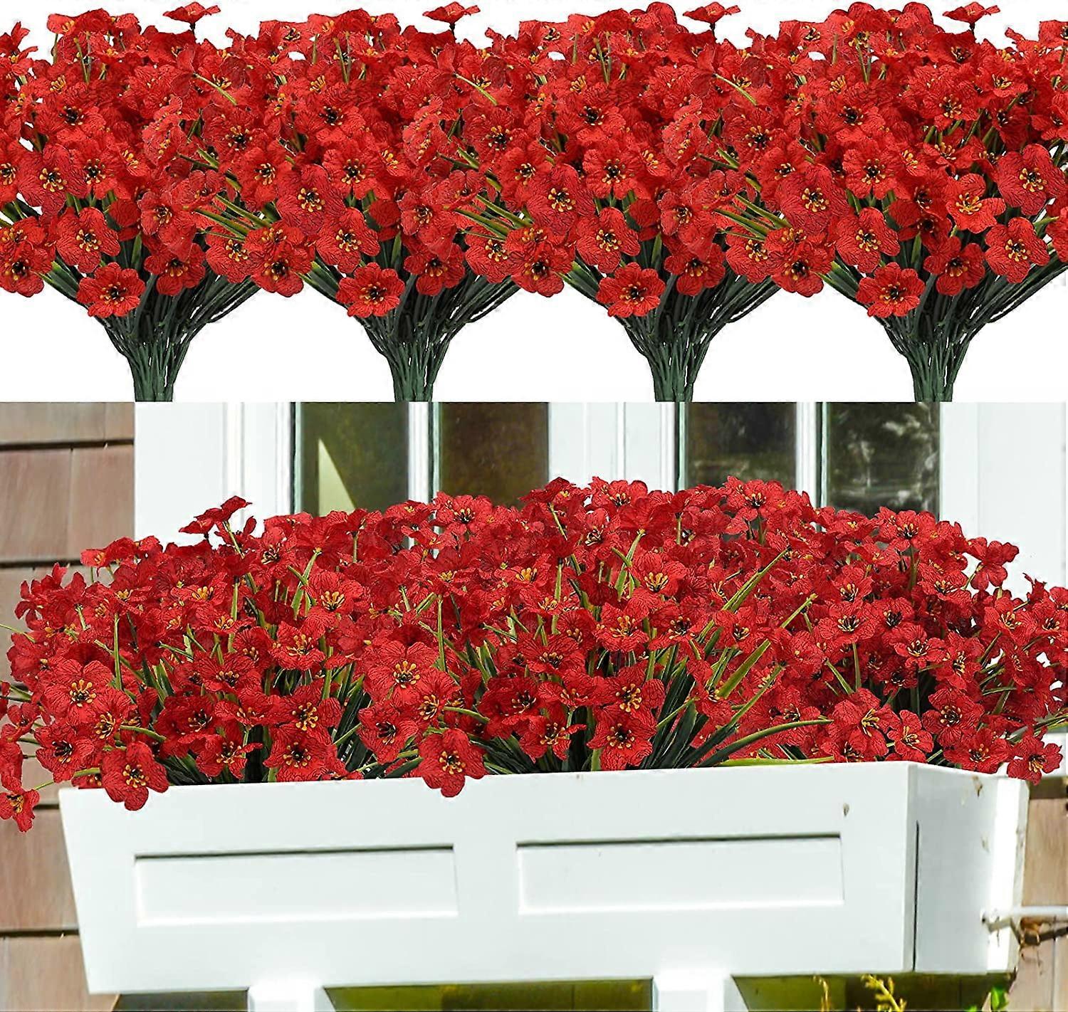 16 Bundles Artificial Red Flowers for Outdoors, UV Resistant Fake Silk Faux Plants Compatible with Hanging Planters, Window Box, Porch Decor
