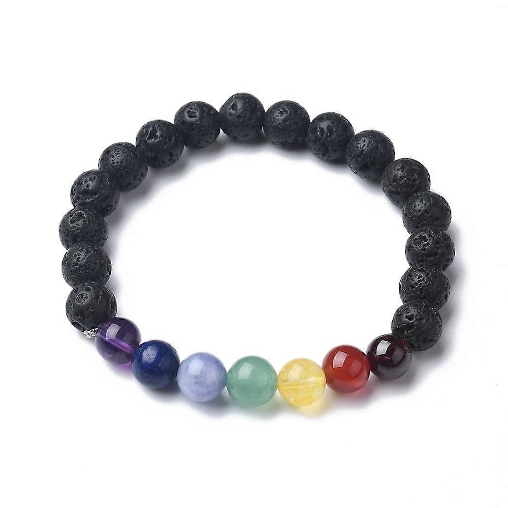 10pc Chakra Natural Lava Rock Beaded Stretch Bracelets with Gemstone Beads 55mm