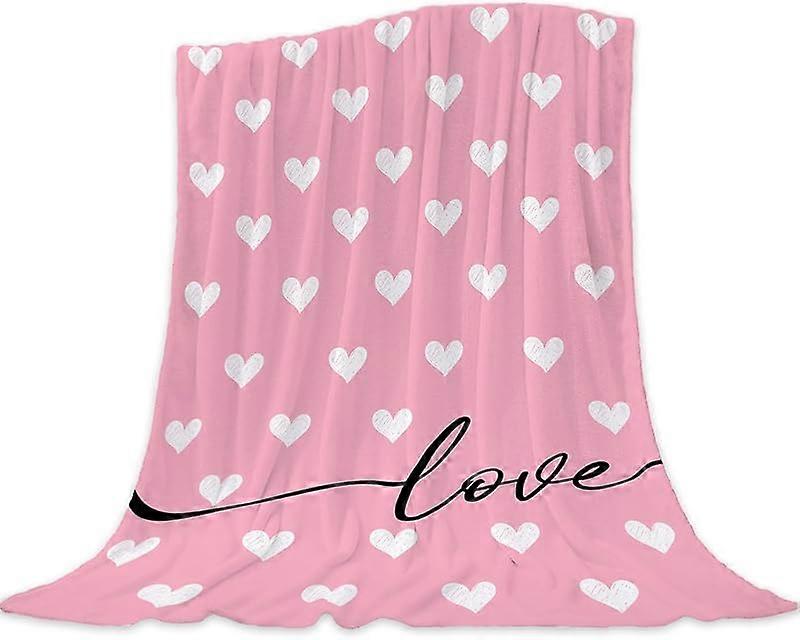 Pink Plaid Love Heart Throw Blanket 50x60 - Soft Fleece Valentine's Gift for Her, Girlfriend, Wife - Compatible with Couch, Sofa, Bed