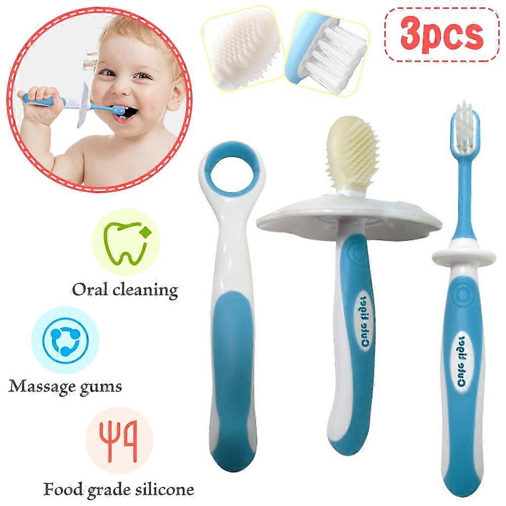 CNKOO 3Pcs Baby Toothbrush Set for 0-36 Month, BPA Free, Soft Teether, Tongue Training, Safety Cover, Toddler Oral Care