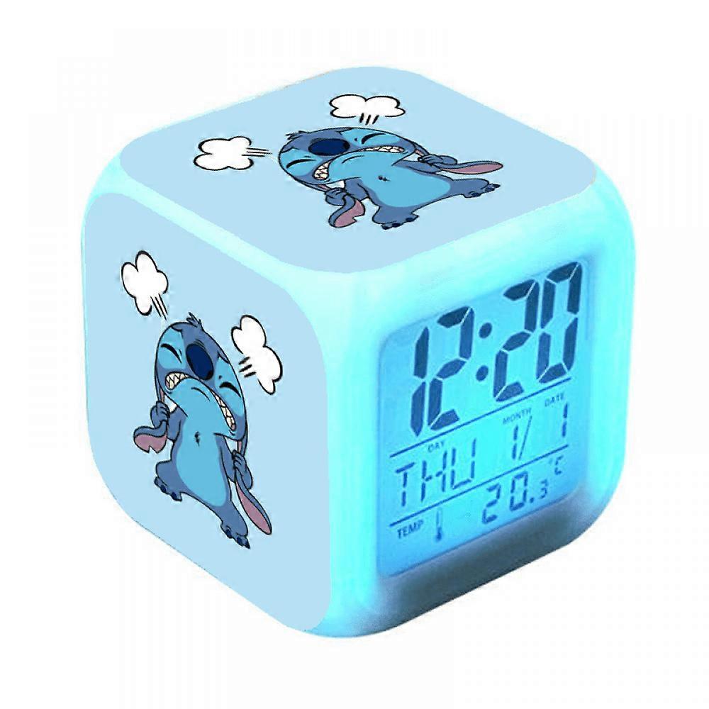 HANNTAOO Digital Alarm Clock for Kids, Cartoon Stitch 7-Color LED Wake-Up Light with Thermometer & Night Light, Gift for Boys Girls A93-1902