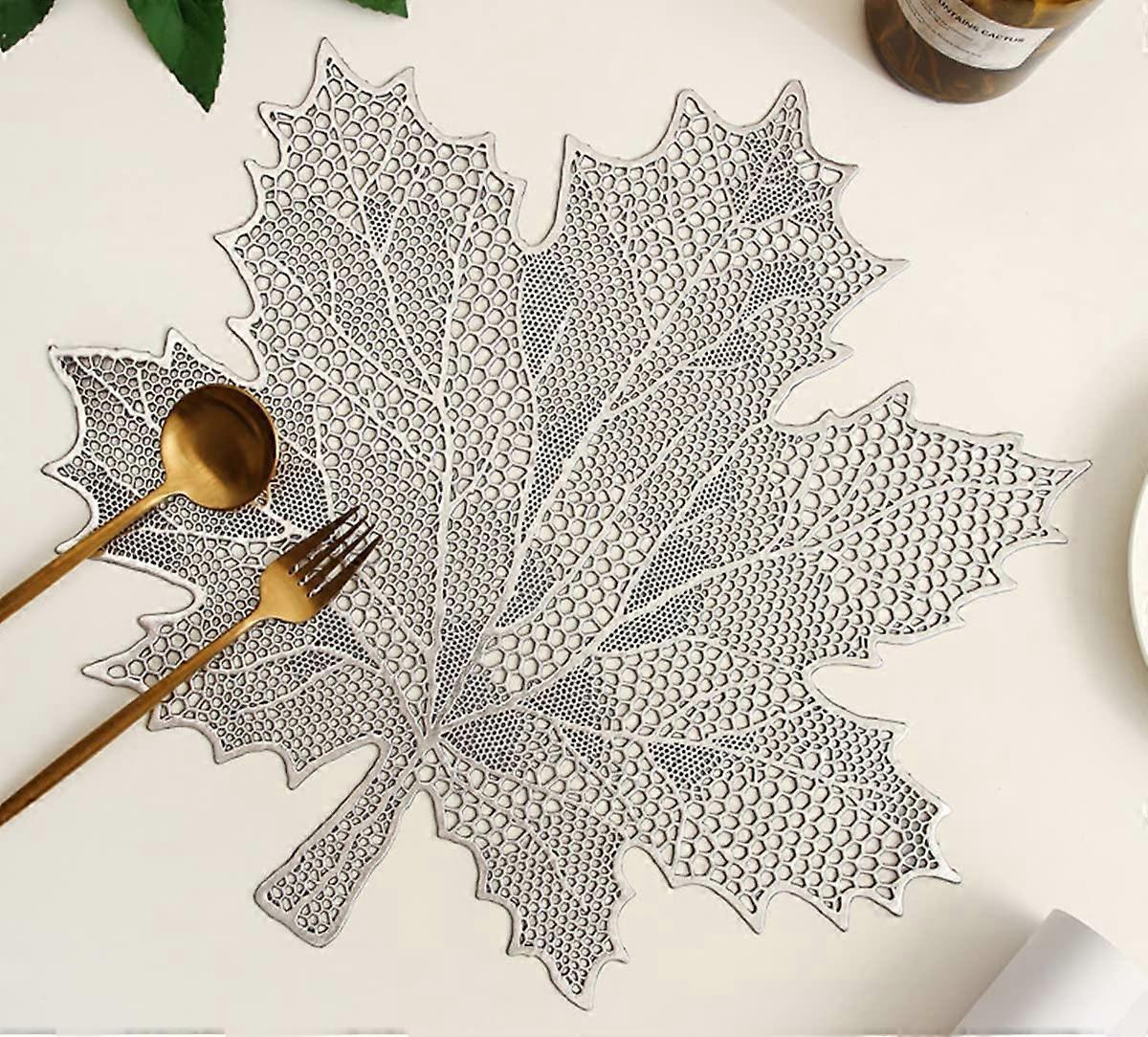 LINLIN 4 Pack Leaf Shaped Placemats PVC Placemats Hollow Dining Table Place Mats Heat Resistant Non-slip Dining Placemats Table Mats