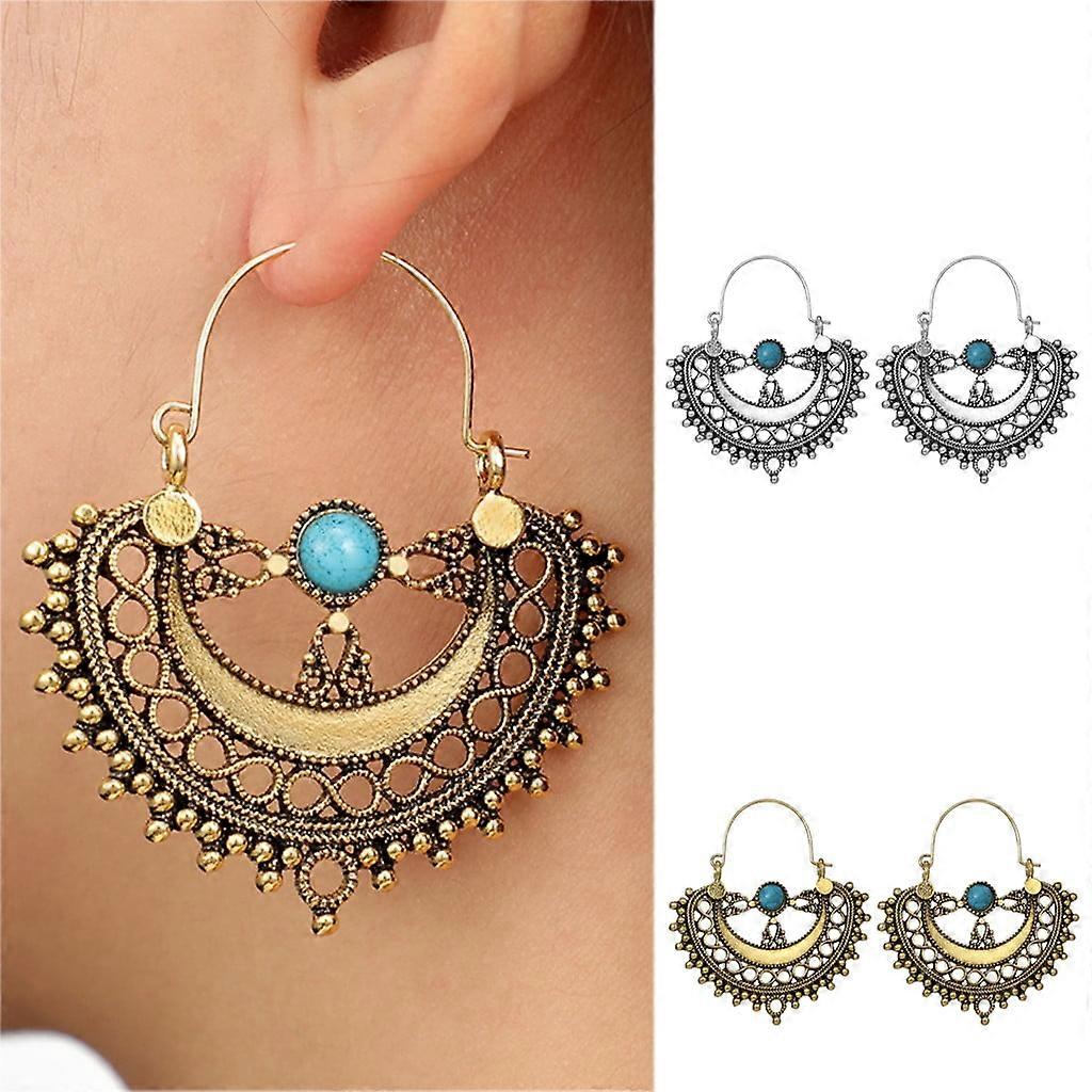 Jacenvly Women's Fashion Hollow Semi-Circular Turquoise Flower Round Earrings - Mother's Day Gifts for Women, compatible with Mom