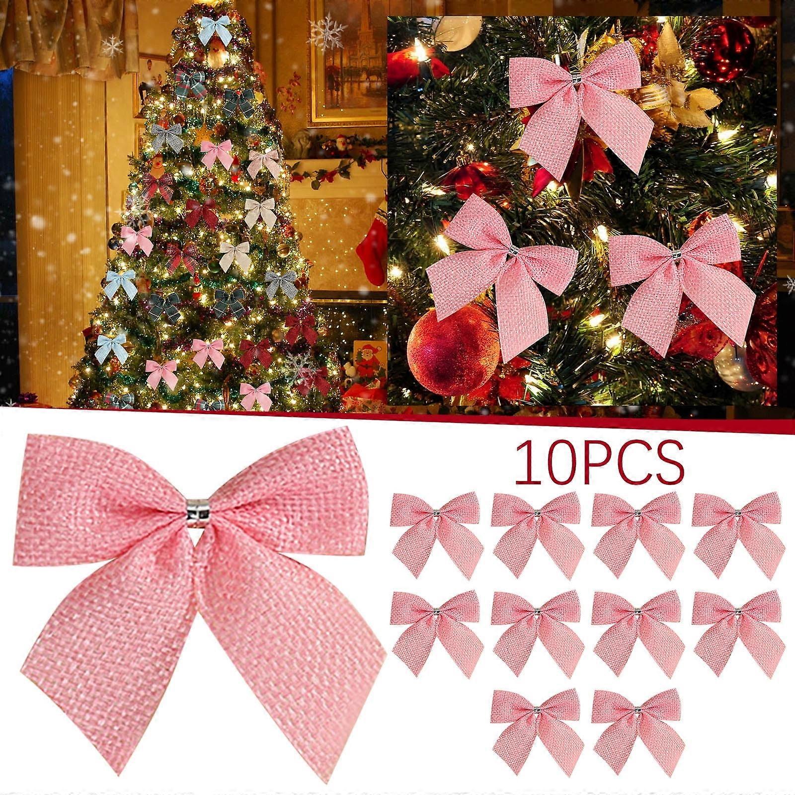 HANXIULIN 10Pcs Christmas Bows, Fabric Garland Decorations Compatible with Christmas Tree, Party Decor, Pink