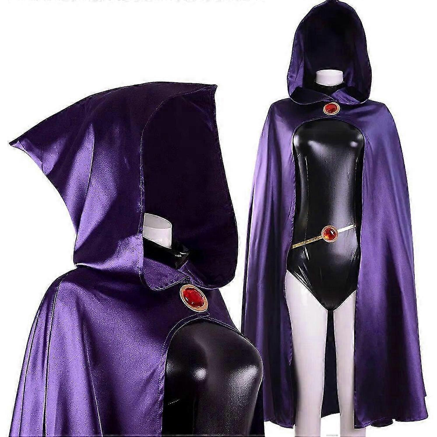 TeenTitans Raven Cosplay Costume Wig Deluxe Jumpsuit Belt Purple Cloak Halloween Uniform For Women XS-3X