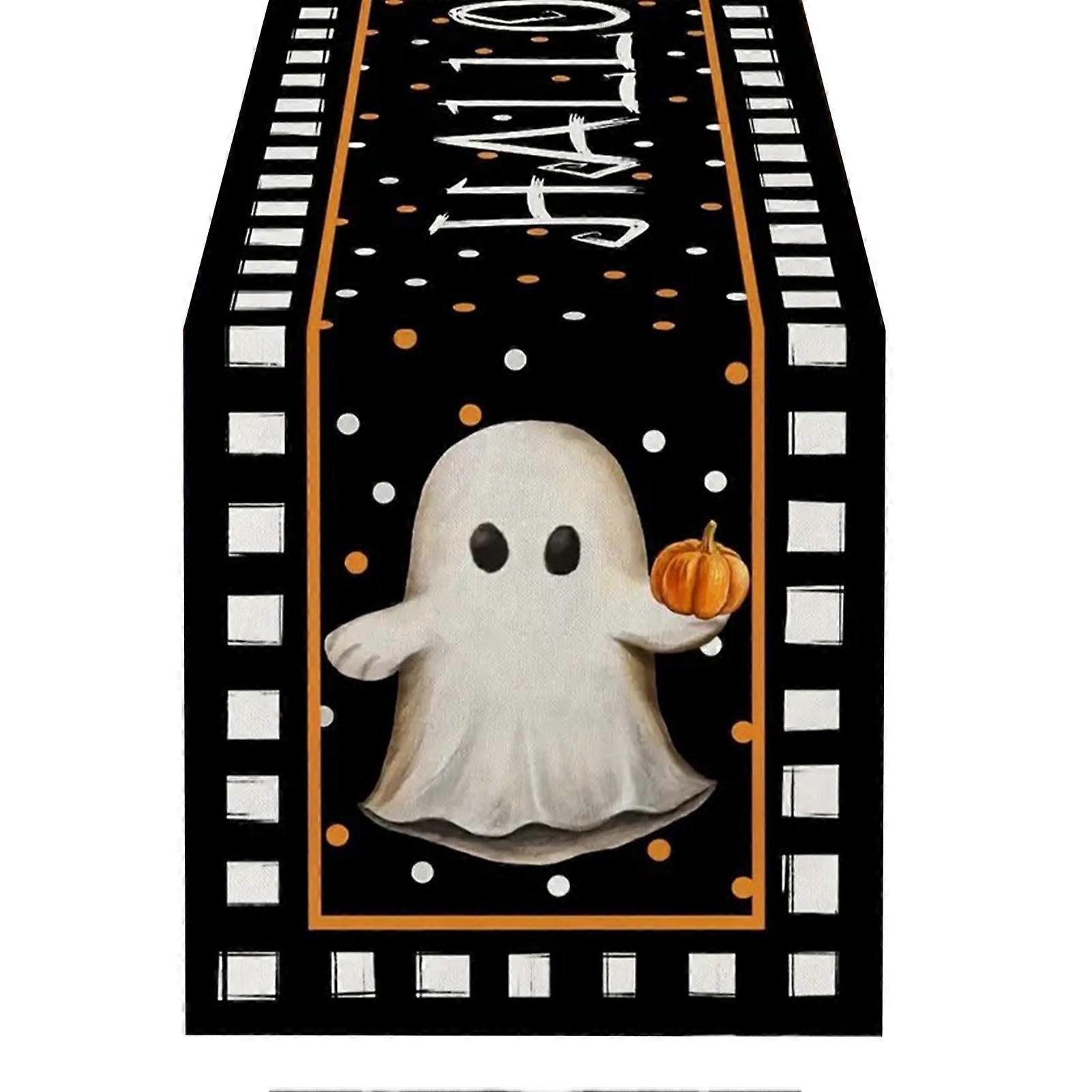 Pink Season Ghost Pumpkin Table Runner, Compatible with Halloween Decor, Spider Web Cartoon Print, No Shrinkage, Easy Care