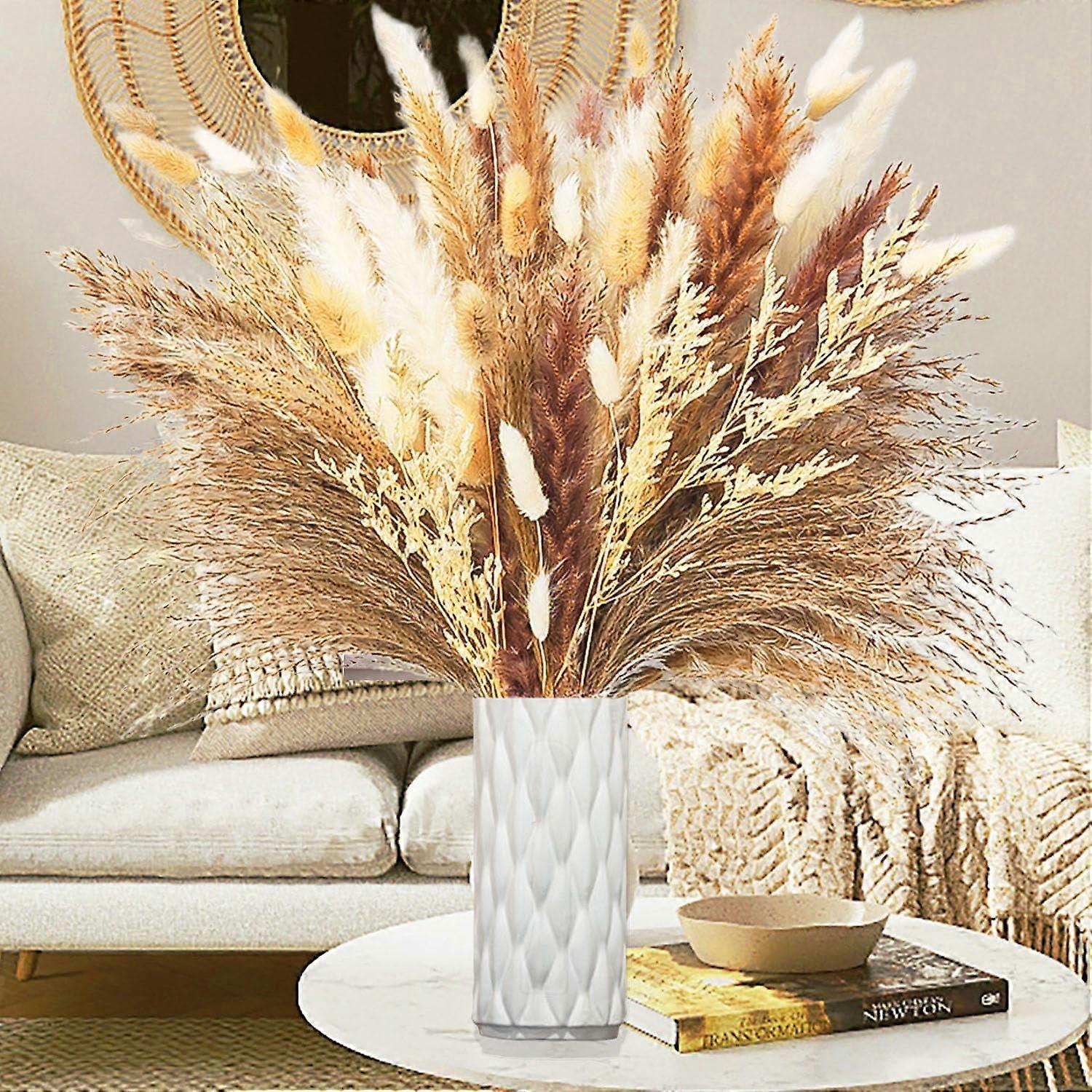 Pampas Grass Decor - 90 stems Dried Flowers Bouquet with Bunny Tail, Natural White & Brown - Perfect for Christmas, Thanksgiving, Boho, Wedding