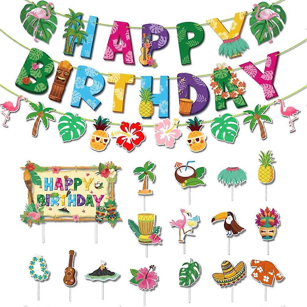 Mizh 1 Set of Hawaii Luau Birthday Party Decoration Happy Birthday Banners Tropical Cupcake Toppers