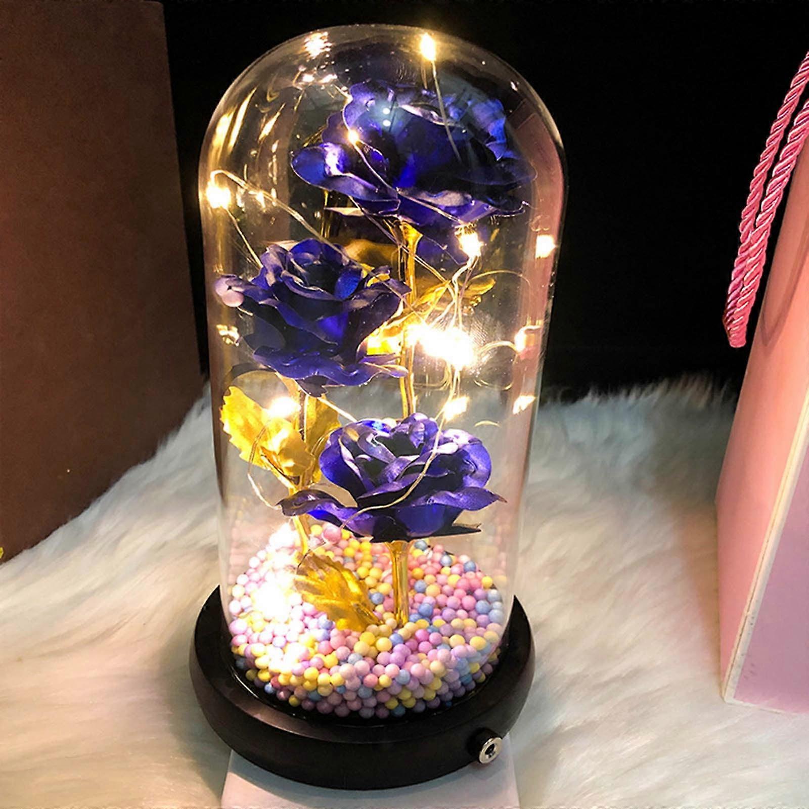 Jacenvly Valentine's Day Decorations Clearance - LED Three Gold Foil Flower Glass Cover, Simulation Flower, Compatible with Valentine's Day Birthday