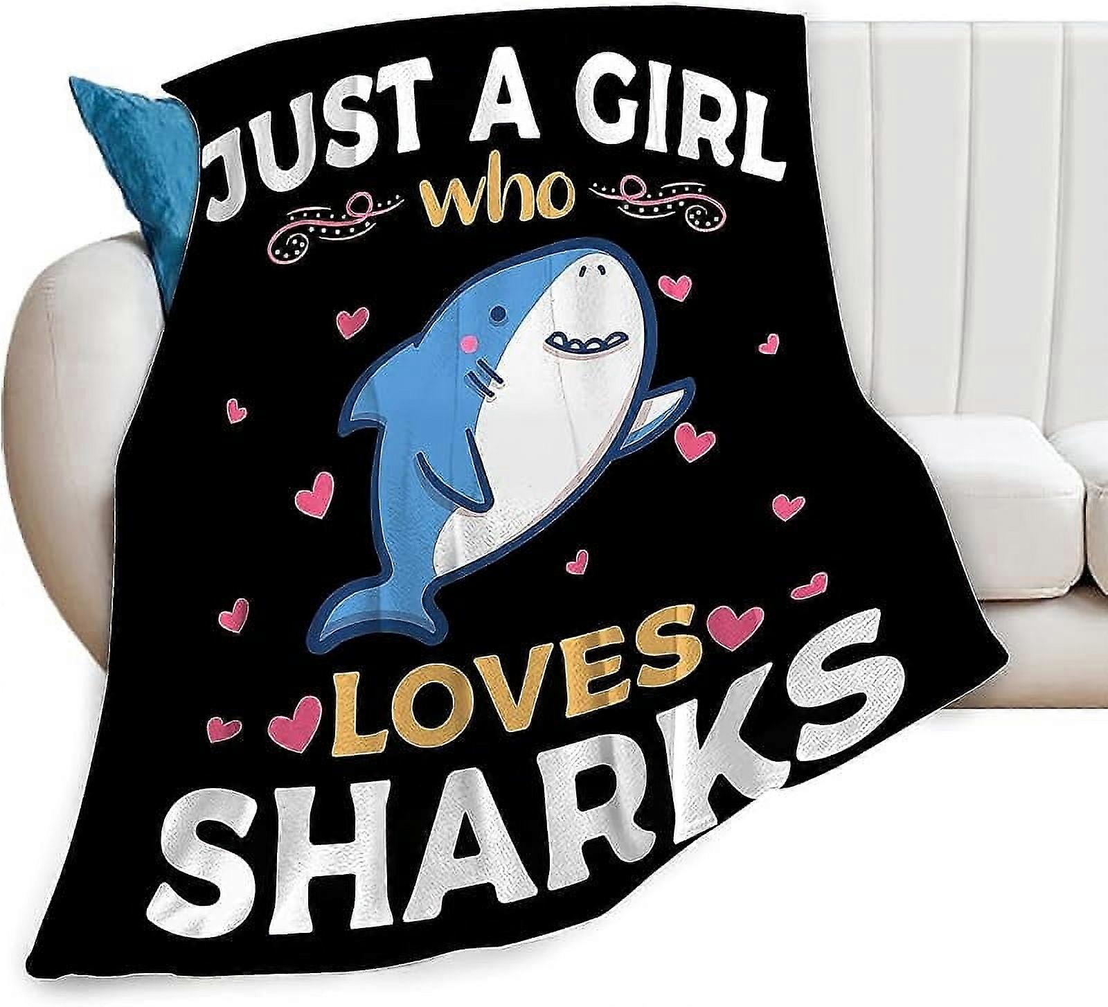 Shark Blanket Cute Shark Plush Throw Blanket Super Soft Cozy Warm Fleece Just A Girl Who Loves Shark Bedding Blanket Gifts for Kids Girls Boys Women