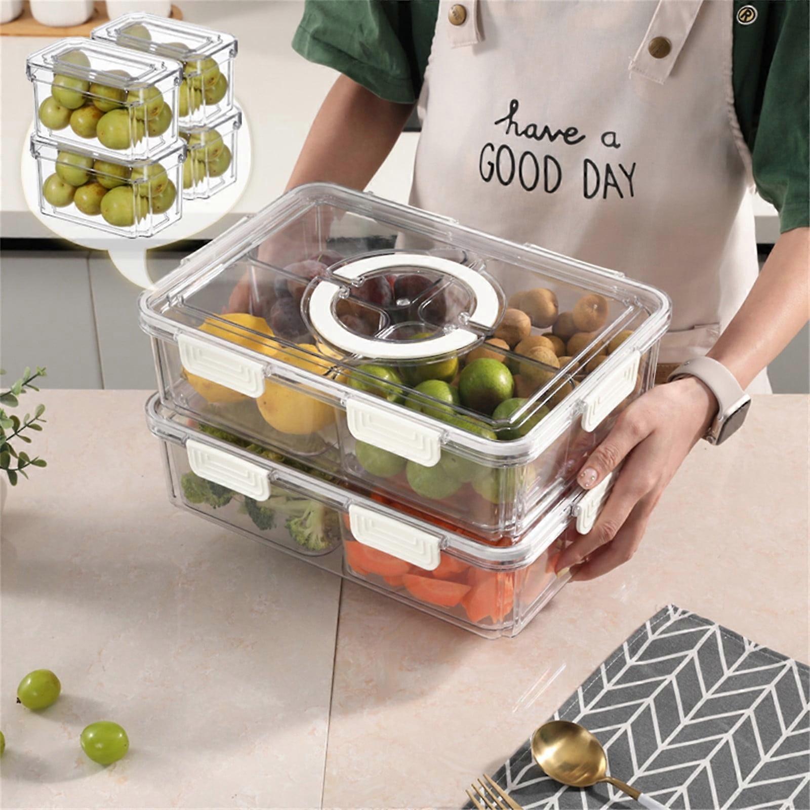 Divided Serving Tray with Lid & Handle, Portable Snack Box, Airtight Charcuterie Container Compatible with Picnic, Party, Home Supplies