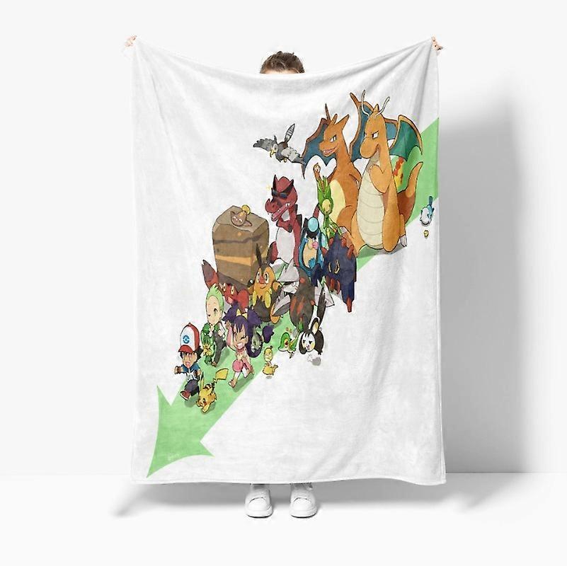 Pikachu Blanket - Super Soft Flannel, Cute Cartoon Design, Warm Christmas & Halloween Gift, Compatible with All Seasons