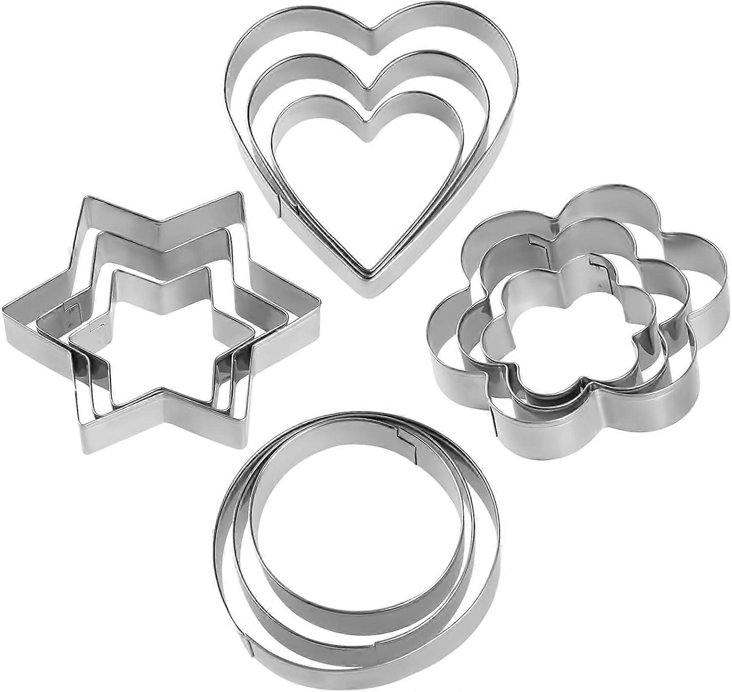12 PCS Stainless Steel Cookie Cutters Set, Compatible with Flower, Heart, Star, Snowflake Shapes for Holiday Baking, Christmas Cooking