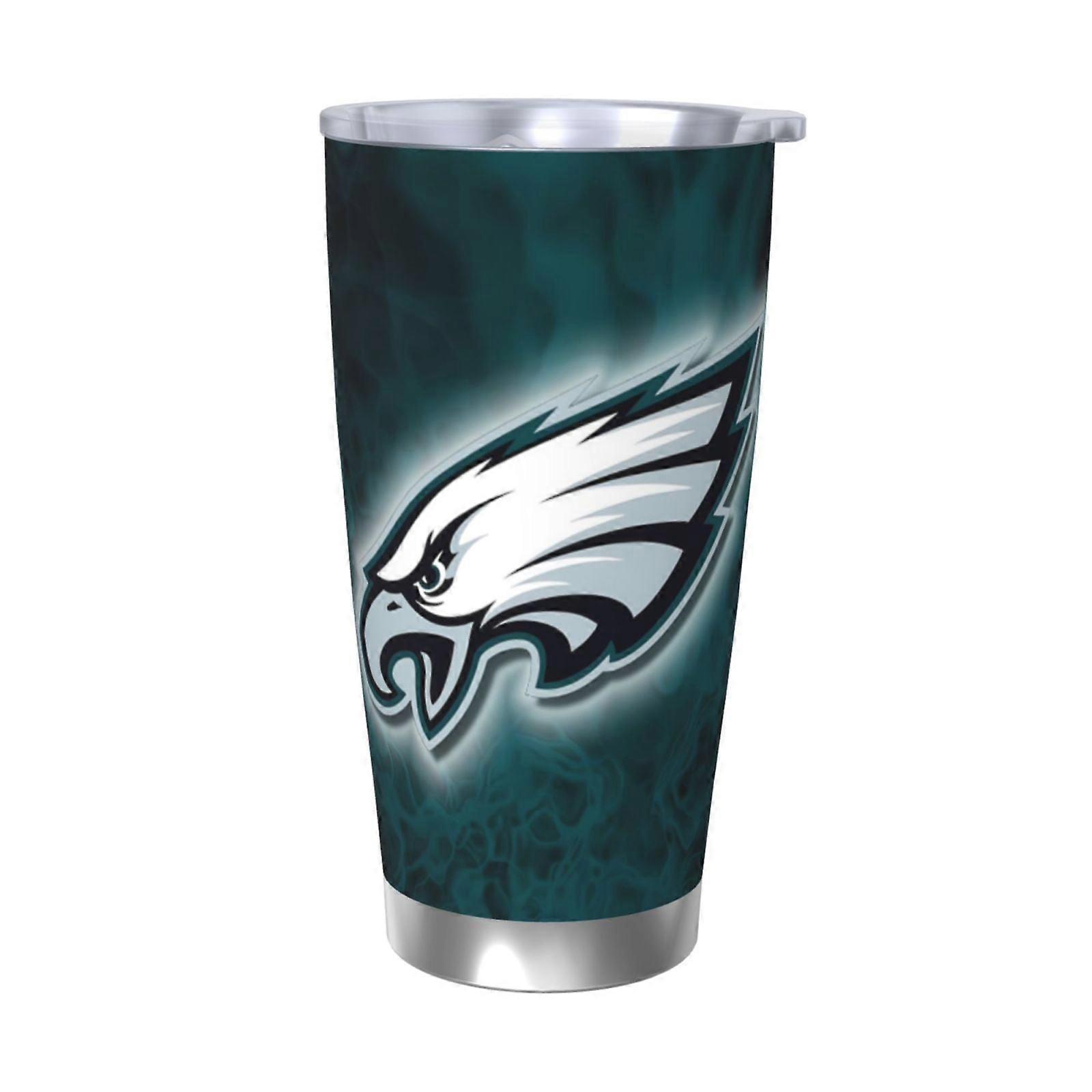 Eagles Football Team Theme 20oz Stainless Steel Thermos Cup with Lid & Straw - Compatible with Car Cup Holders, Hot & Cold Drinks, Coffee, Sports,