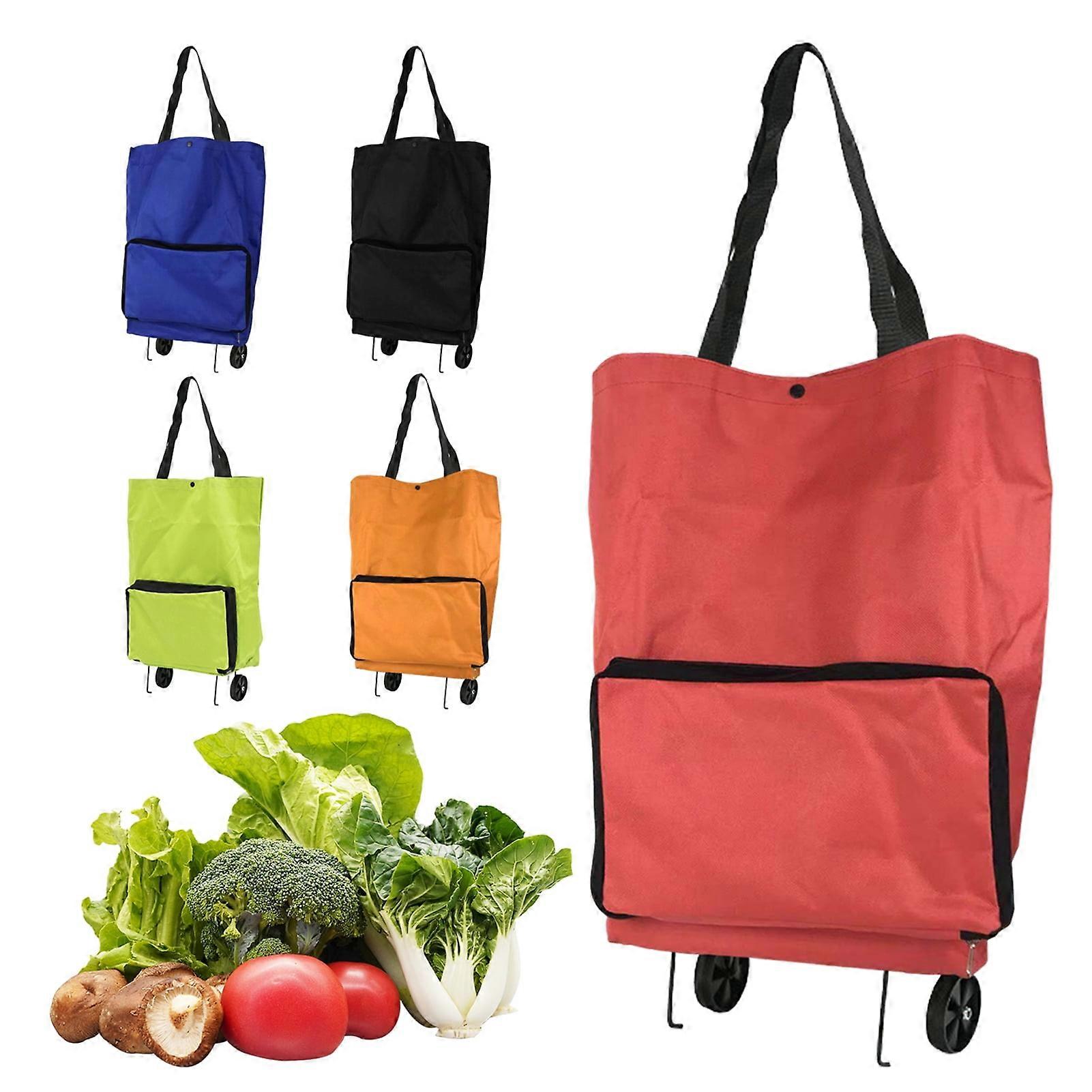 SUSUchens Folding Shopping Cart Trolley Bag with Wheels Large Capacity Foldable Design Waterproof Shopping Bag Portable Hand-Pulling Grocery Bag Red