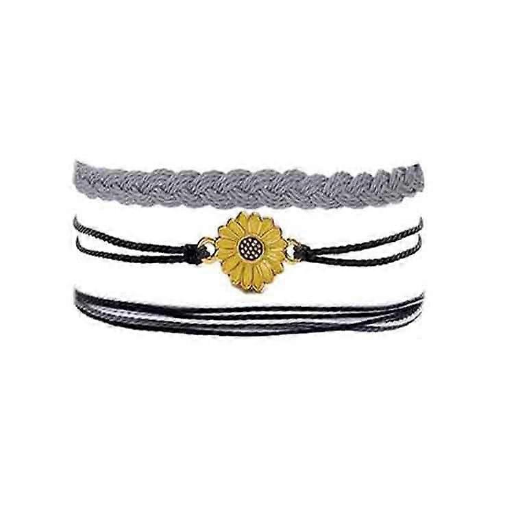 Sunflower Daisy Braided Rope Bracelet, Bohemian Beach Waves Couple Hand Jewelry, Adjustable Handmade Summer Bracelet Anklet, Multicolor