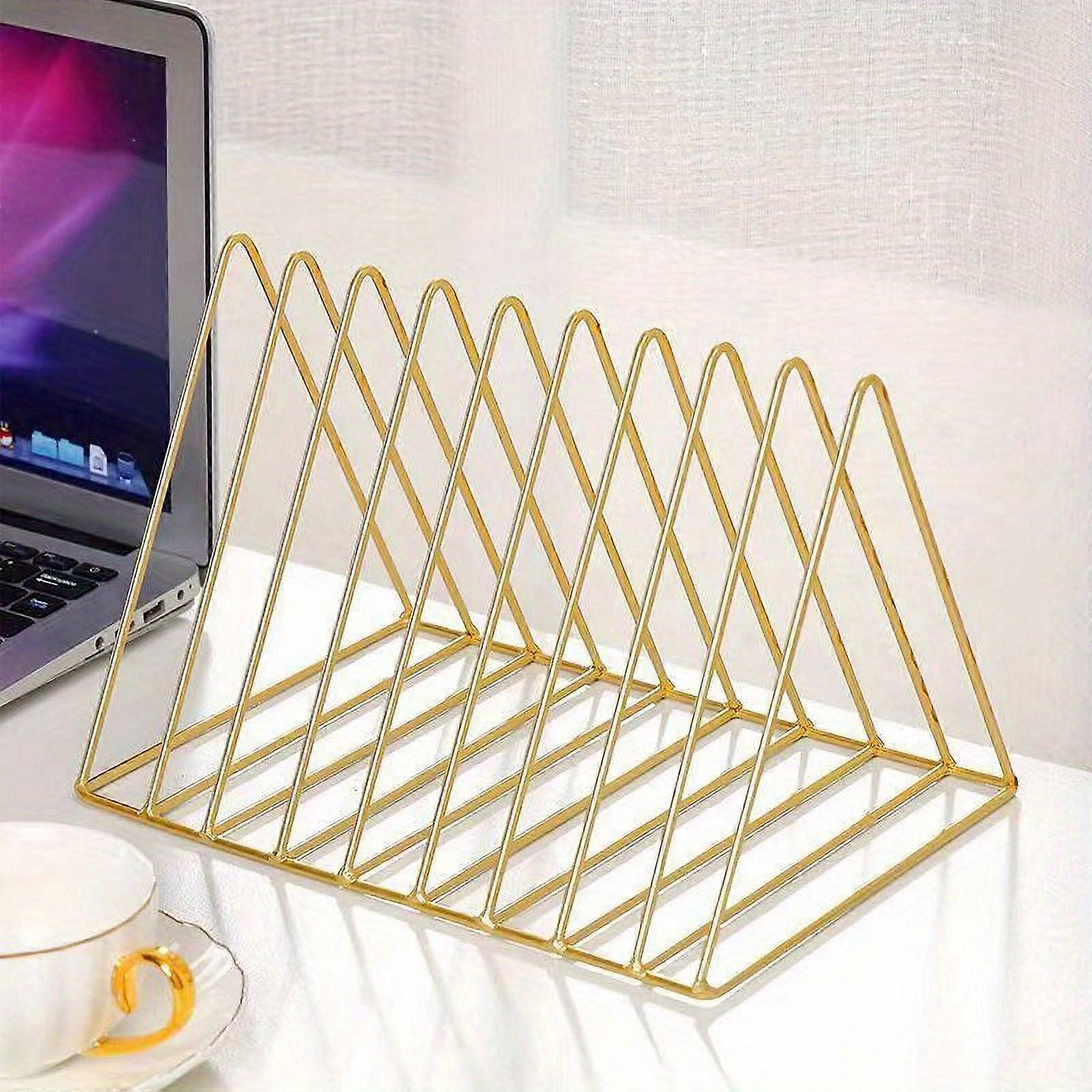 9-Section Metal Wire Desk Organizer - Triangle Magazine & File Holder, Modern Home Office Decor, Durable Storage Solution For Books And Documents