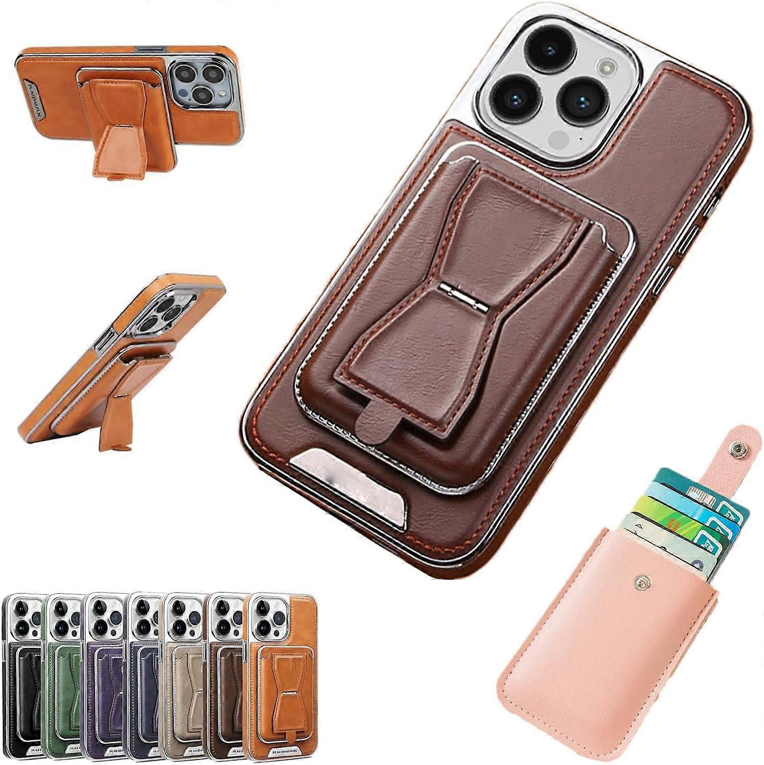 Symmetry Luxury Leather Case compatible with iPhone 14, Brown, with Removable Magnetic Tape & Card Holder