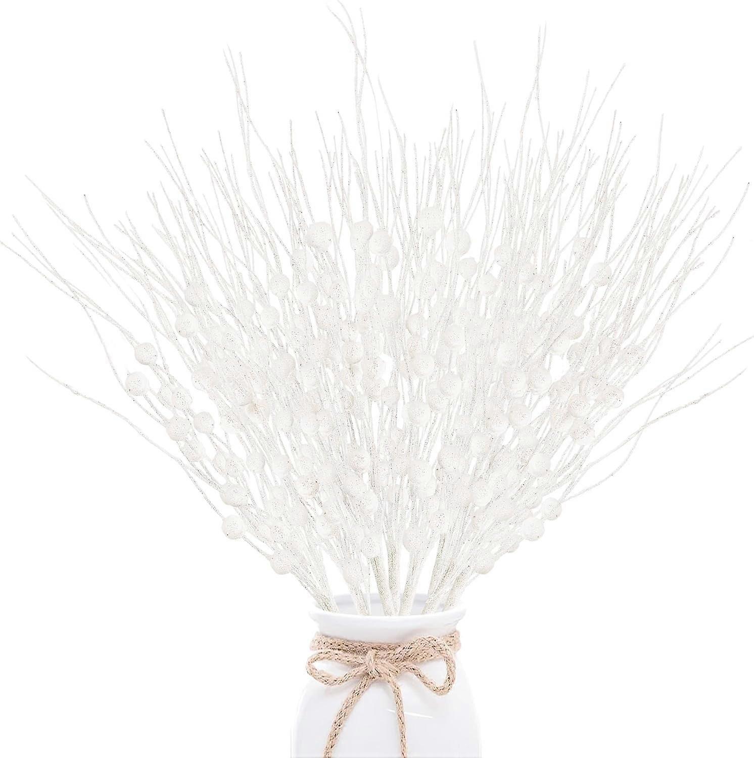 24 Pack Pink Glitter Berry Stems 17" - Artificial Christmas Picks Compatible with DIY Tree Wreath Crafts, Fireplace & Home Decor