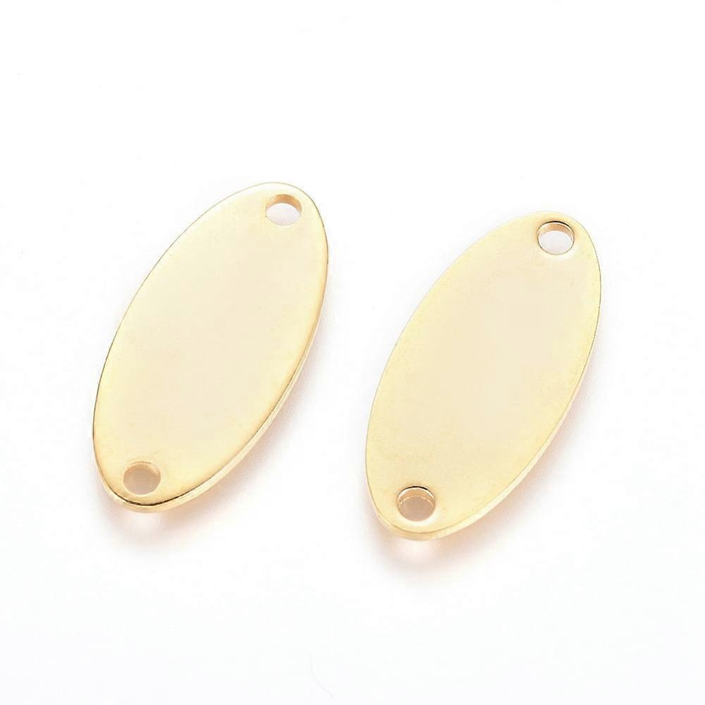 5pc 201 Stainless Steel Links connectors Stamping Blank Tag Oval Real 24K Gold Plated 16.5x7.5x0.7mm Hole: 1.4mm DIY Material: 201 Stainless Steel Metal Color: Real 24K Gold Plated Shape: Oval Usage: Links Package Size: 5 pc per package