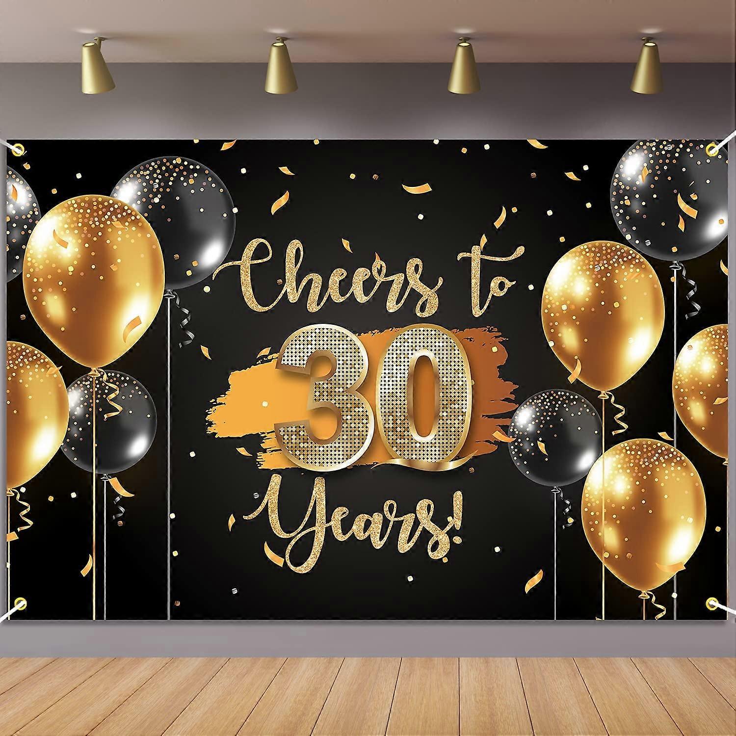Cheers to 60 Years Backdrop Banner Happy 30th Birthday Background Decorations for Women Men Her Him Anniversary Photography Party Supplies Black Gold
