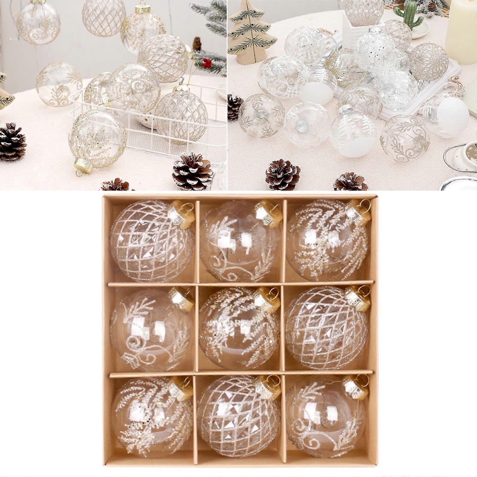 9pcs Clear Glitter Christmas Ball Ornaments, 80cm/3.15'' Shatterproof Tree Decorations Bulk for Xmas Home Indoor Outdoor Holiday Wedding Party
