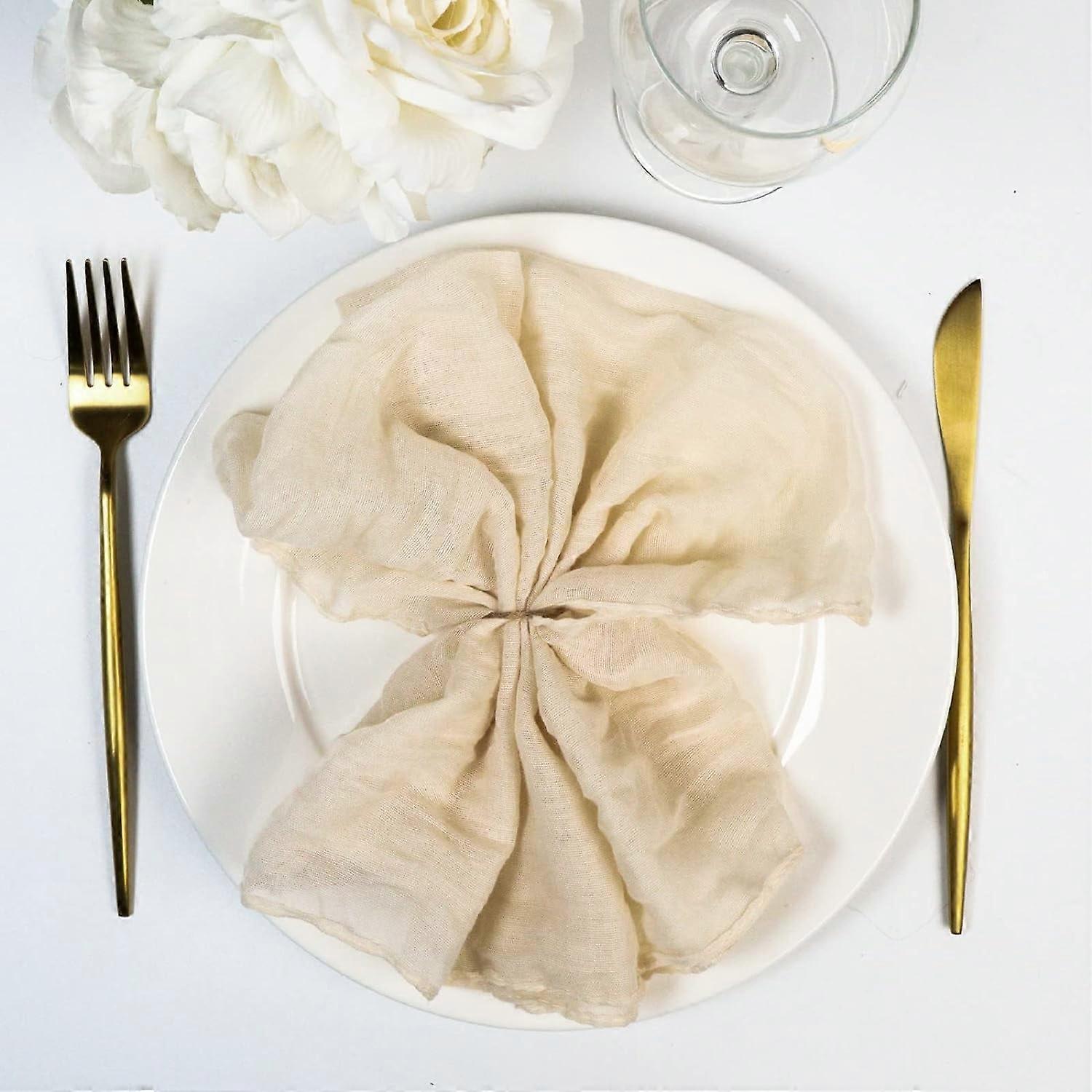 6Pcs 20x20inch Cheesecloth Napkins, Gauze Dinner Napkins Rustic Linen Table Placemat for Christmas Wedding Party Birthday Baby Shower Decor, Ivory