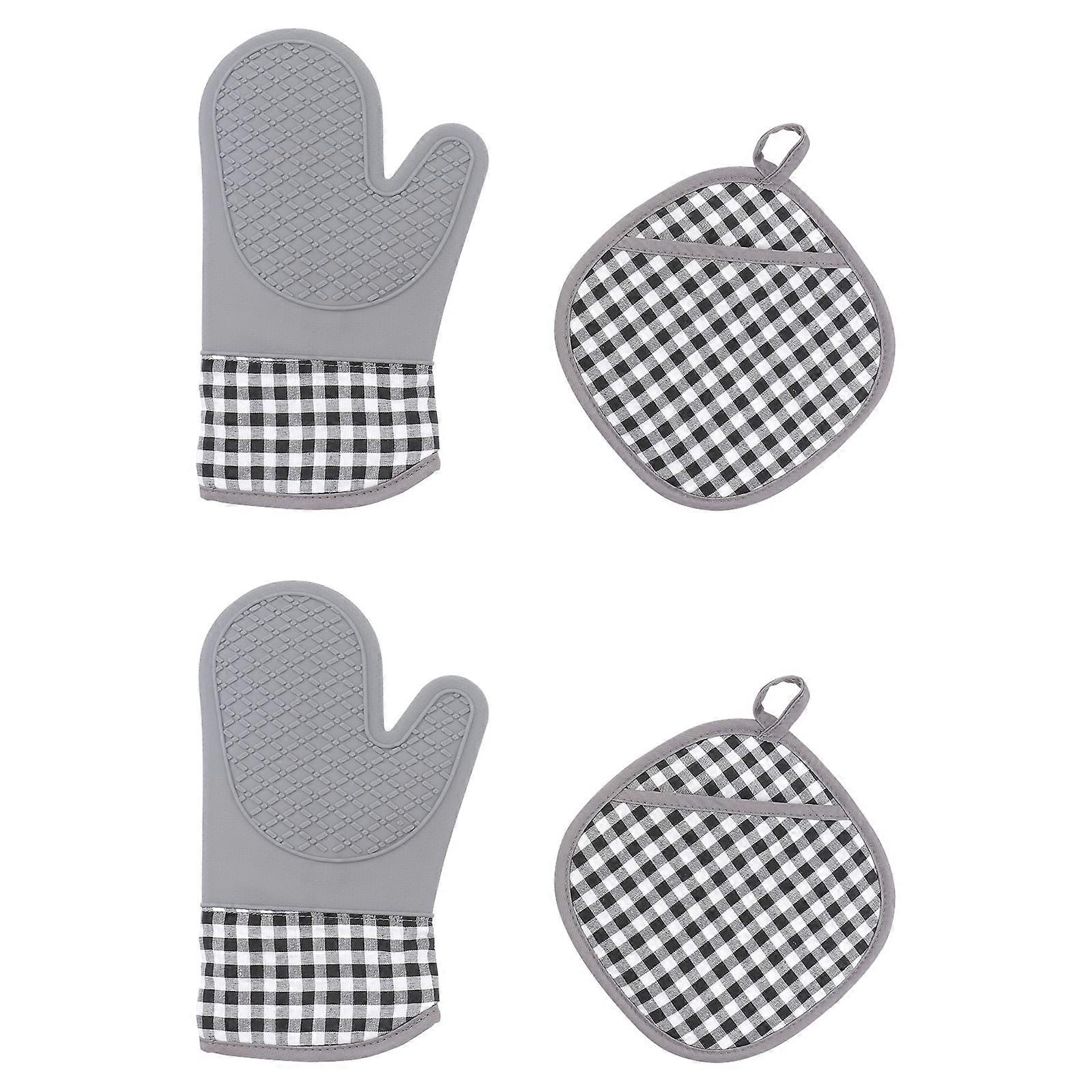 Guangmc Silicone Oven Mitts & Cotton Pot Holder Set (Gray)