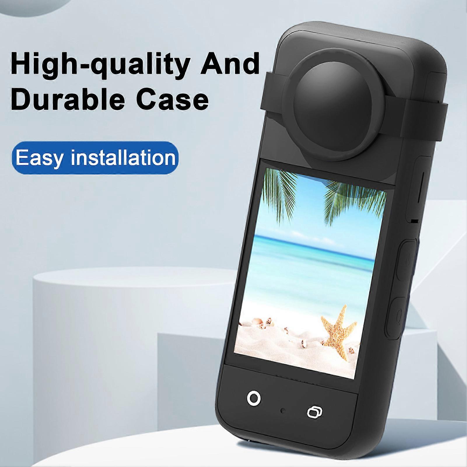 SUSUchens Silicone Protective Case Anti-drop Easy Installation with Anti-drop Lanyard Lens Cover for Insta 360 X3 Black