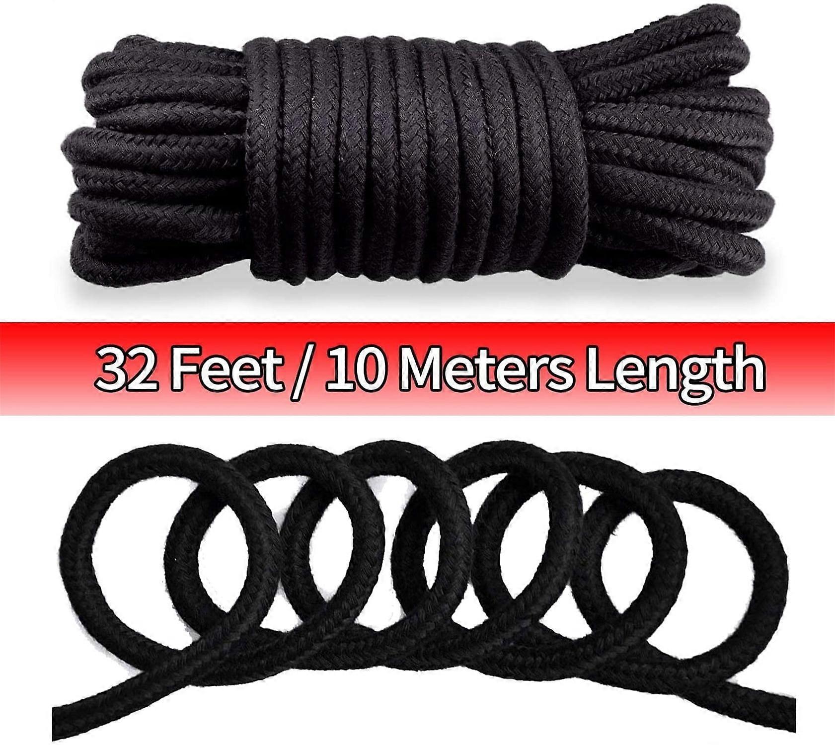 Casewin Soft Cotton Rope for Multipurpose 32 Feet / 10 Length 1/3 Inch Thick Durable Twisted Rope Cord for Climbing Braid Home Decor(1 Pack, Black )