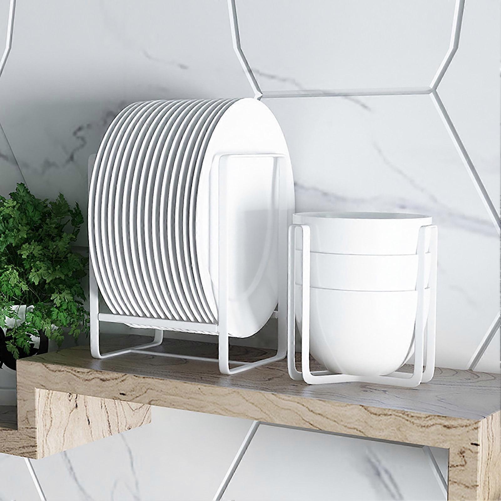 SUSUchens Multifunctional BPA-Free Metal Dish Drying Rack, Compatible with Pots, Plates, Bowls, Chopsticks, Spoon, Kitchen Storage Shelf, White, Size