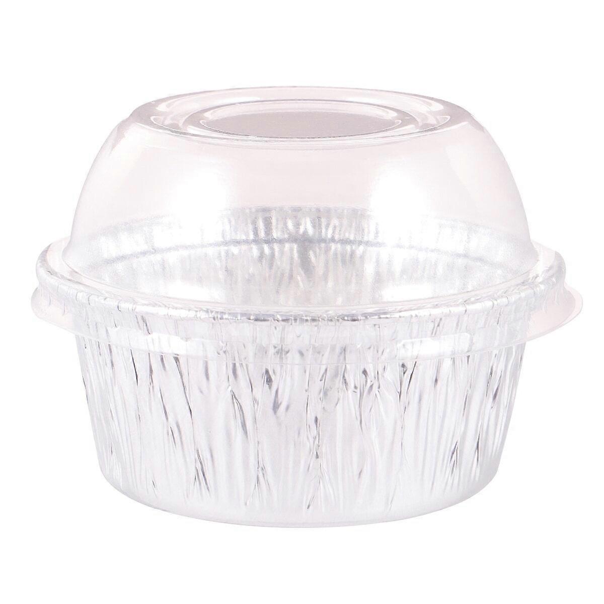 Tin Foil Bowls 20pcs Tin Foil Bowl Fast Food Bowl Heat-resistant with Plastic Lid for Baking and Grilling (130ML)