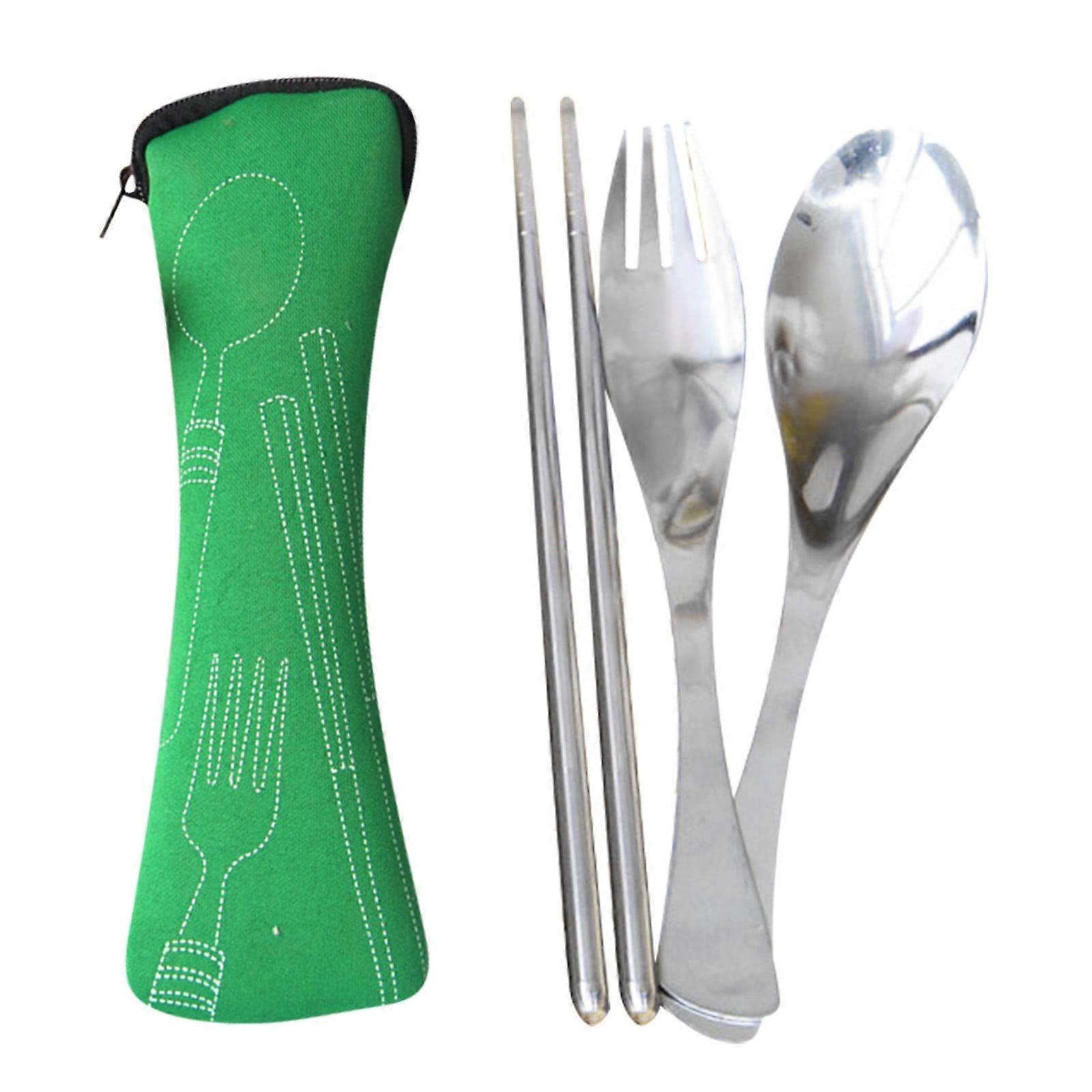 Portable Cutlery Set 3Pcs Stainless Steel Knife Fork Spoon Family Travel Camping Cutlery Features: With a carrying case, this flatware set is convenient to carry in a backpack or purse. They are corrosion-free and rust-less because of using the material of stainless steel, keep shiny for long time. These flatware and the small bag are all washable, easy to clean and easy to carry with. Say no to throwaway or plastic flatware, it is an environmental protection way to use reusable tableware. Durable, Tableware Set, Lightweight, Camping Accessory Product Description: size: Cloth bag: 20cm (7.87in) X6.5cm (2.56in) Fork: 16.5cm (6.5in) Chopsticks: 18.7cm (7.36in) Spoon: 16.5cm (6.5in) product material:Stainless Steel The package contains: 1X cloth bag + 1X fork + 1 pair of chopsticks + 1X spoon. 1. Durability: Tableware is often made from materials like porcelain or stainless steel, ensuring longevity. 2. Versatility: Tableware can be used for everyday meals, formal dinners, picnics, and more. 3. Dishwasher-safe: Most tableware items are safe to use in the dishwasher for easy cleaning. 4. Style: Tableware comes in a variety of designs, from minimalist to intricate patterns, catering to different tastes. 5. Functionality: Tableware items, such as plates, bowls, and cutlery, serve practical purposes in serving and enjoying meals.