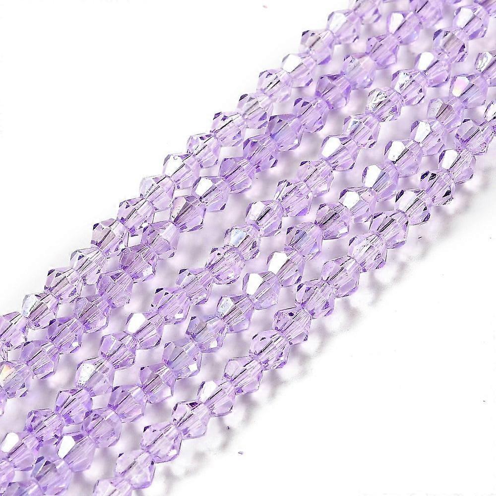 Transparent Electroplate Glass Beads Strands AB Color Plated Faceted Bicone Lilac 4.5x4mm Hole: 0.7mm about 82~85pcs/strand 30.5~31cm