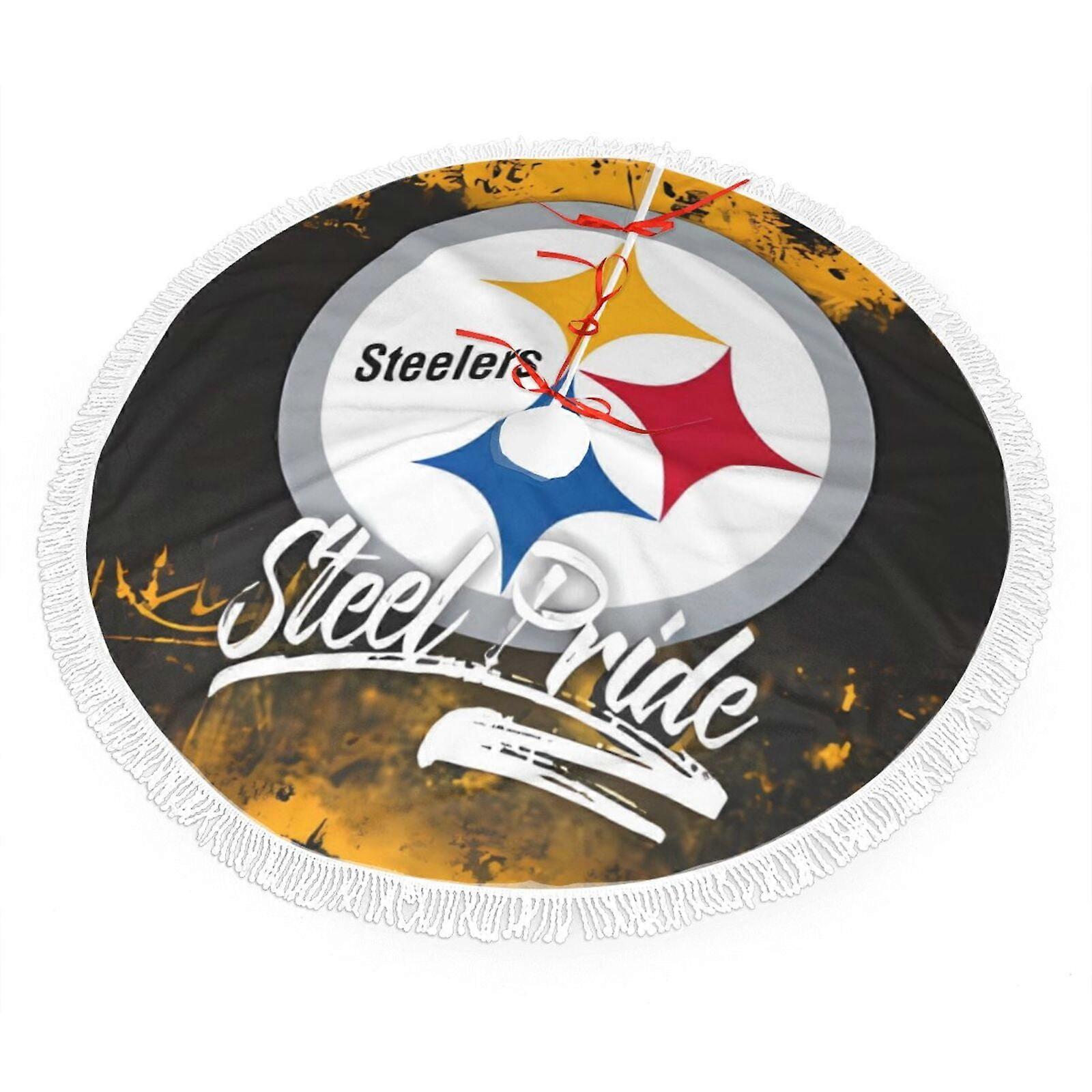 Steelers Christmas Fringe Tree Skirt, compatible with NFL decor, plush football team colors, 30" 36" 48", bright & easy to install, perfect fan gift