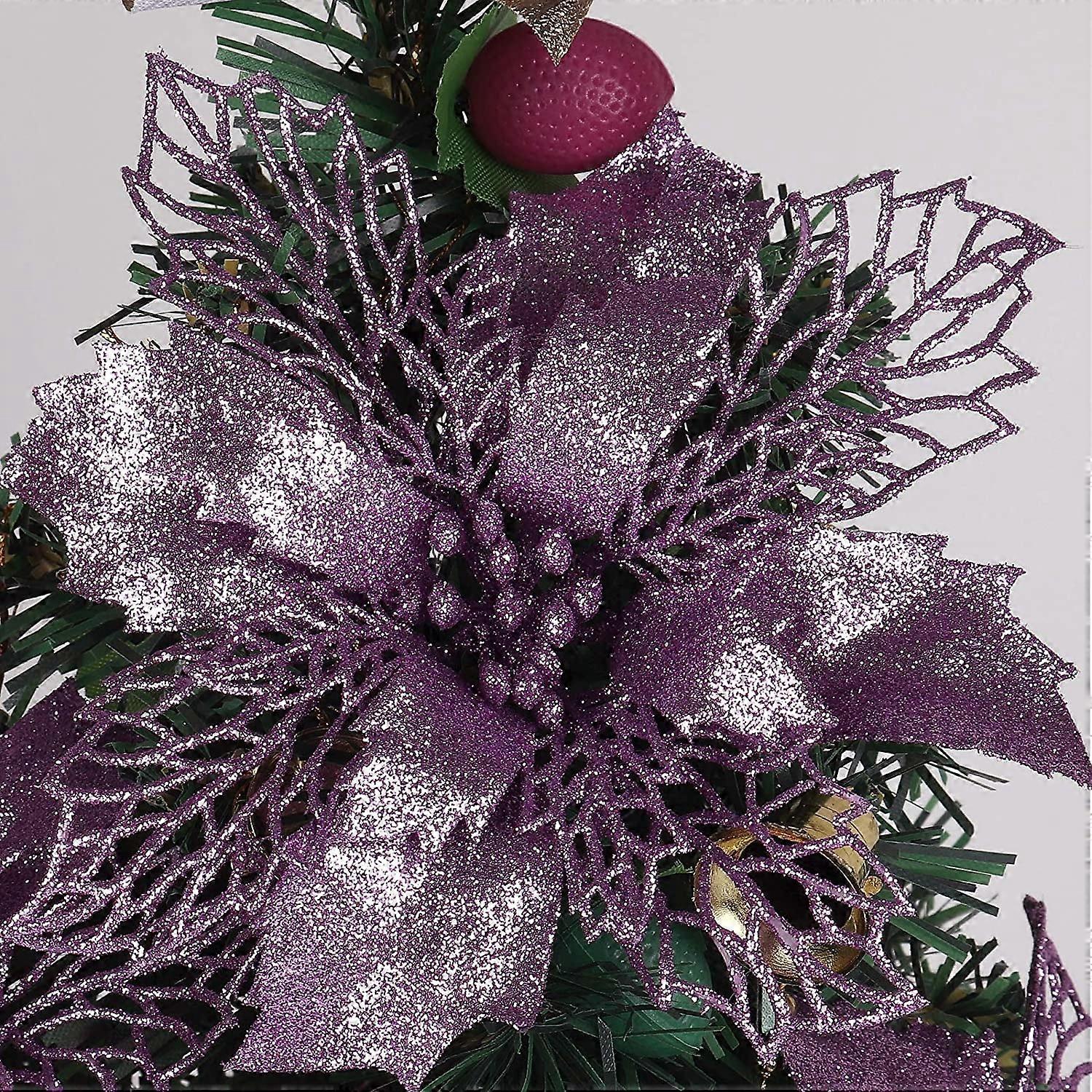 10 Pcs Glitter Gold 6" Artificial Poinsettia Flowers, compatible with Christmas Wreath, Garland, Tree Decor (Silver)