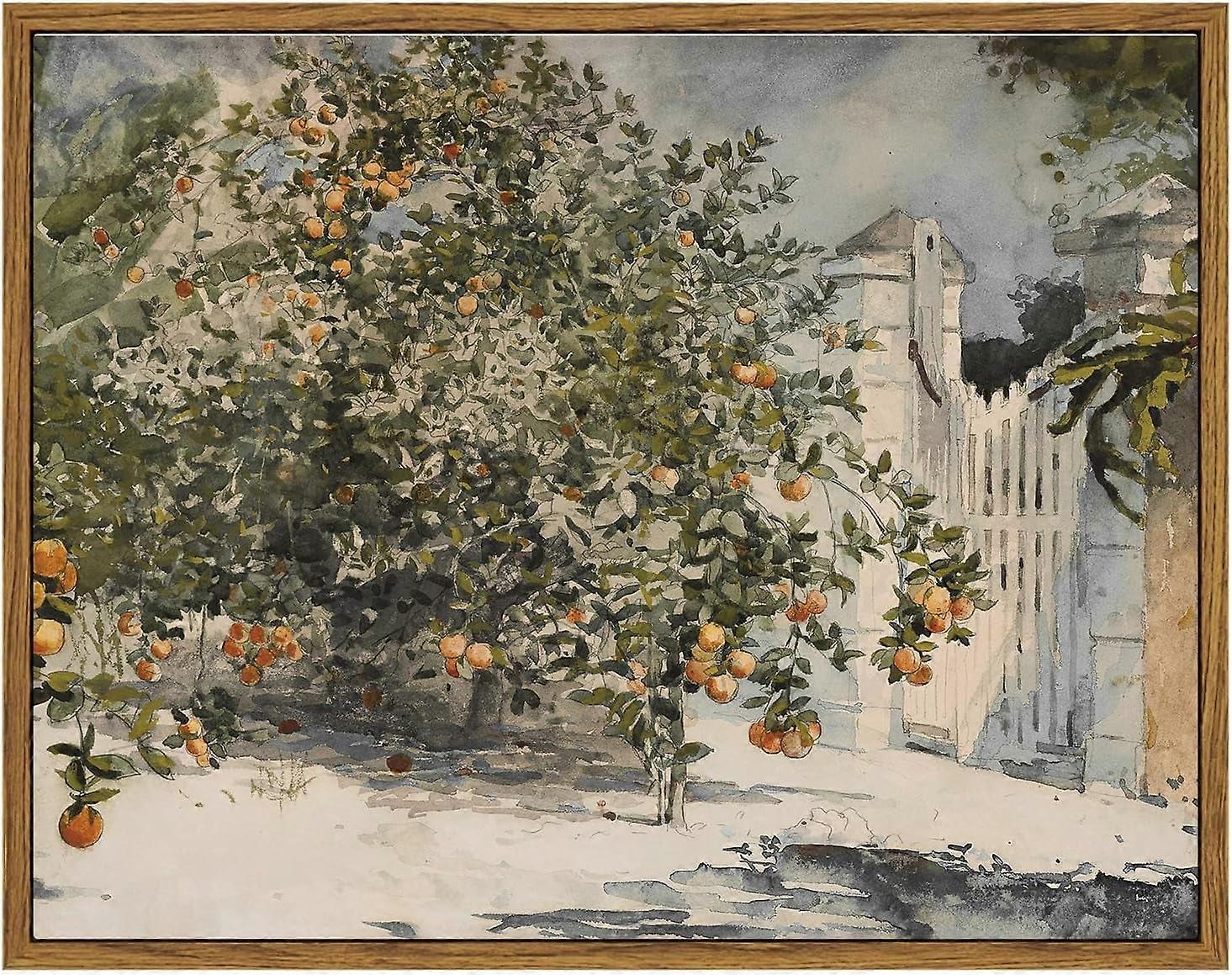 Framed Canvas Wall Art 11"x14", Vintage Country Orange Trees Decor, Earthy Aesthetic for Kitchen, Living Room, Bedroom, Rustic Farmhouse Style